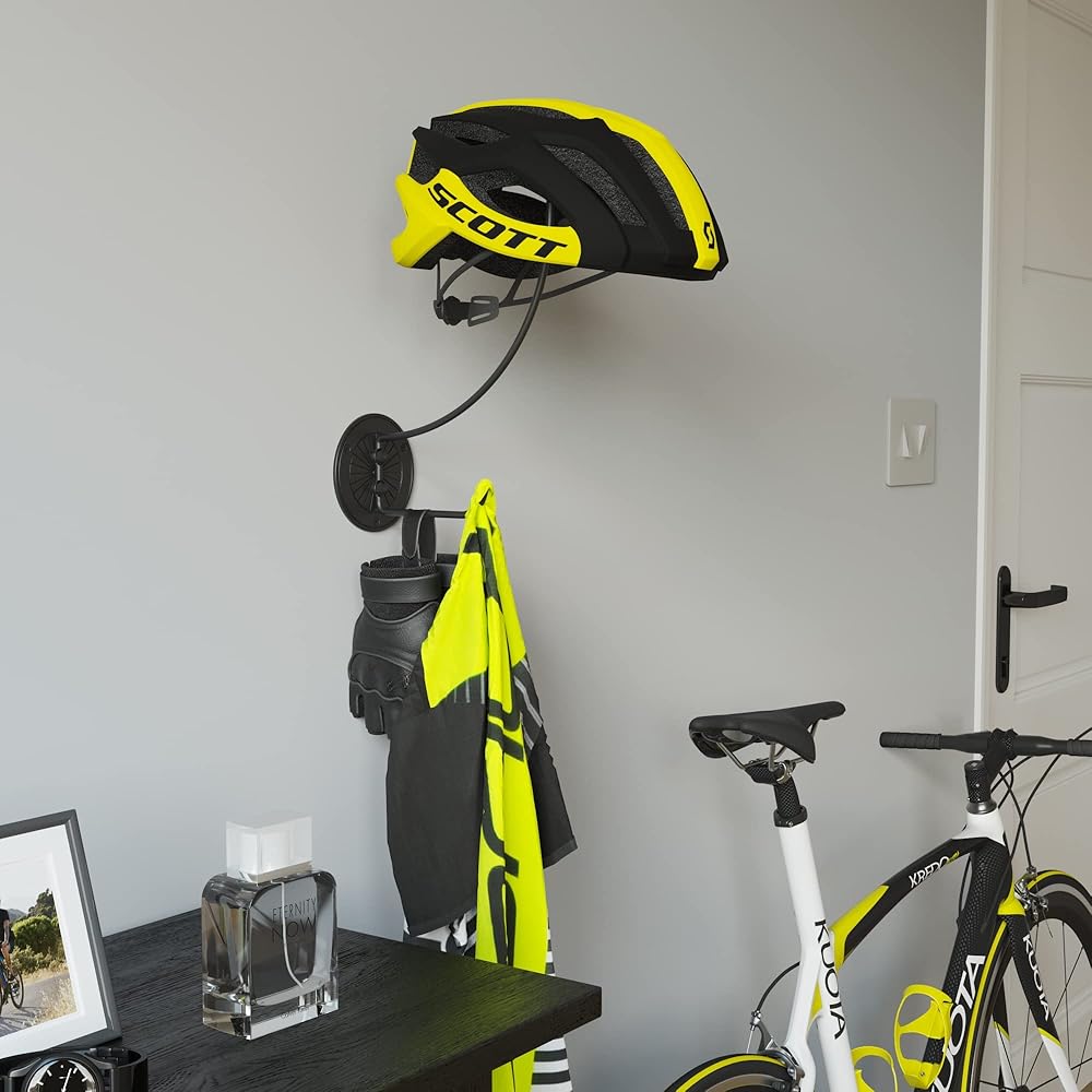 التصميم المنحني: سيساعدك التصميم المنحني لرف Casco على تخزين أحجام مختلفة من الخوذات بسهولة. مصنوع من معدن صلب ومتين، منظم التعليق كاسكو سيحافظ على خوذات الدراجة الخاصة بك آمنة بسهولة.