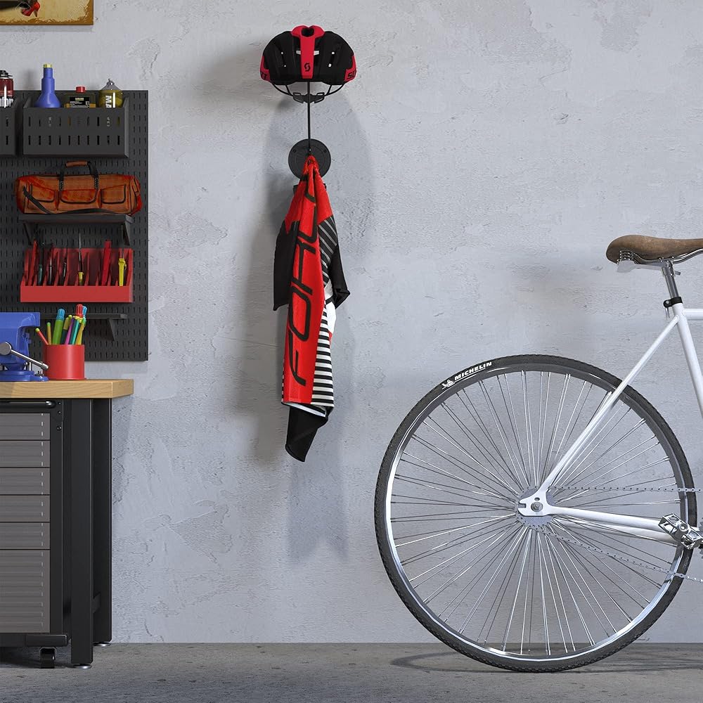 توفير المساحة: سيمنحك رف تخزين المرآب Wallniture Casco لملحقات وخوذات الدراجة الفرصة لتنظيم خوذاتك مع توفير المساحة. يمكنك بسهولة تحويل أي جدار فارغ إلى مكان تخزين لخوذة أطفالك، أو خوذات للكبار. بفضل الخطاف القوي لشماعة الخوذة، يمكنك أيضًا تعليق سترتك وقفازات ركوب الدراجات والدراجات النارية والمفاتيح وغيرها الكثير بسهولة.