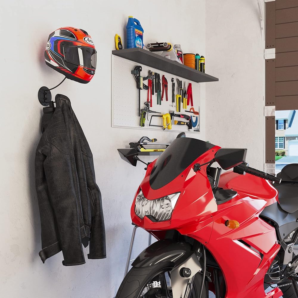 حامل خوذة الدراجة النارية: إذا كنت بحاجة إلى حل تخزين أنيق لخوذتك، فإن الرف المعدني Casco سيكون مثاليًا لك. قم بتركيب وحدة تخزين الحائط الخاصة بك على أي جدار في المرآب أو المدخل الخاص بك واحتفظ بخوذة الدراجة النارية الخاصة بك في متناول يدك في أي وقت. احصل على خوذتك ومفاتيحك قبل مغادرة منزلك واستمتع برحلتك.