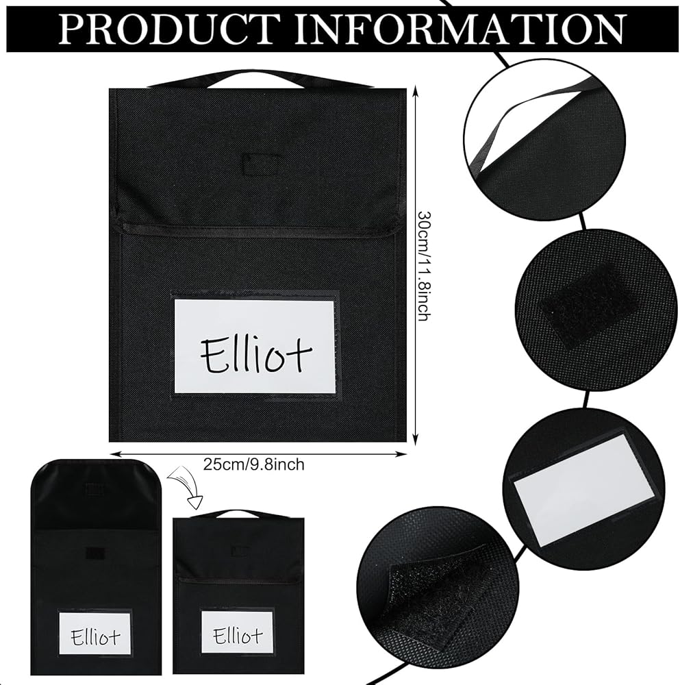 8 قطع من حقيبة الكتب المصنوعة من النايلون الأسود مع حقيبة كتب مخيطة على مقبض للفصل الدراسي، وبطاقة اسم واضحة وحقائب قراءة مقاومة للماء من الورق المقوى الأبيض، ومستلزمات الواجبات المنزلية للطلاب والأطفال، مقاس 9.8 × 11.8 بوصة
