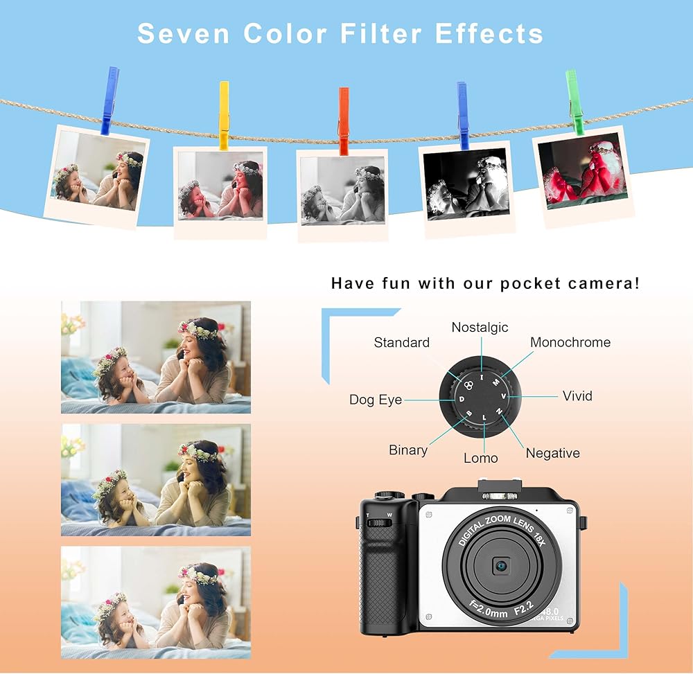• ✔[أفضل كاميرا لليوتيوب] يمكن استخدام كاميرا اليوتيوب لمدونات الفيديو ككاميرا ويب للبث المباشر. تدعم كاميرا تسجيل الفيديو الخاصة بنا أيضًا ميزات التصوير المتتابع والفيديو المتكرر والفيديو البطيء. تعد هذه الكاميرا الصغيرة، صغيرة الحجم ولكنها قوية بالنسبة لحجمها، رائعة لوضعها في جيبك في تلك المناسبات عندما تريد السفر خفيفًا دون الحاجة إلى حمل الكثير من العدسات. نقدم لك أيضًا بطاقة 32G TF حتى تتمكن من استخدامها لحظة استلامها.