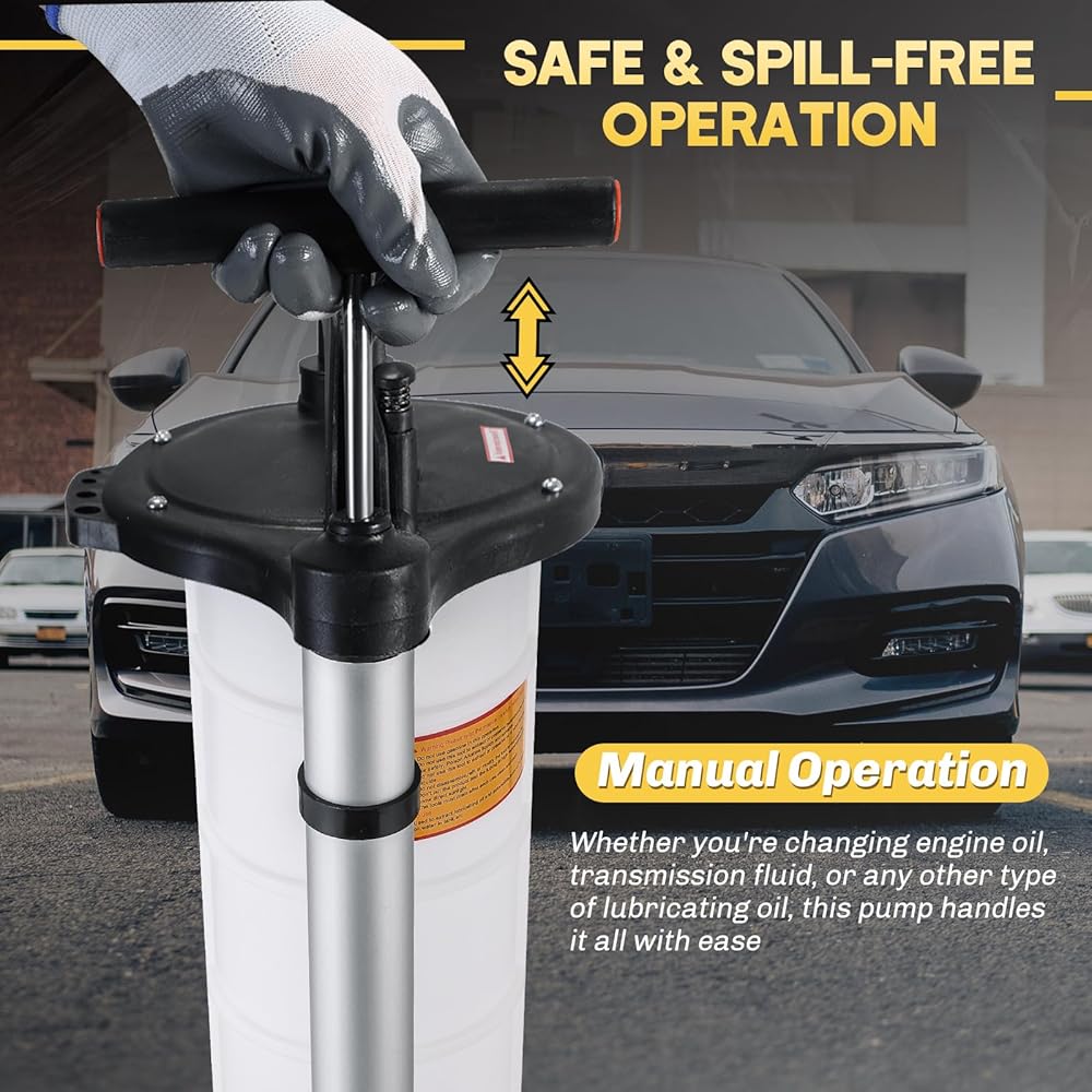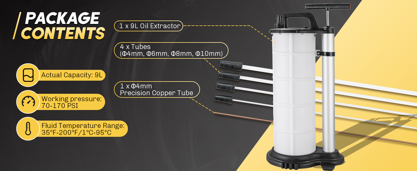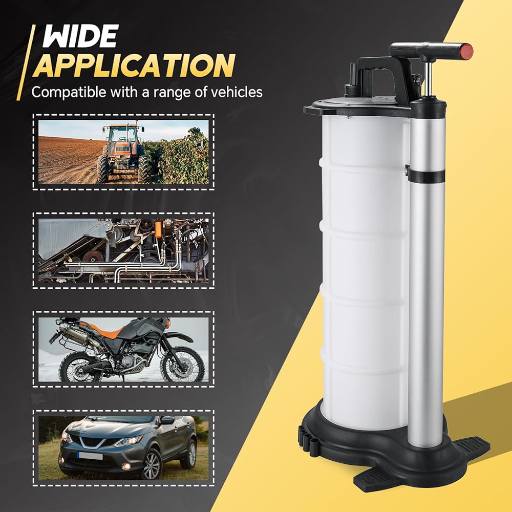 • 【استخراج قوي ومتعدد الاستخدامات】 تعمل مضخة مستخرج السوائل اليدوية المتغيرة للزيت سعة 9 لتر على إخلاء ما يصل إلى 9 لترات من الزيت بكفاءة. سواء كنت تقوم بتغيير زيت المحرك أو سائل ناقل الحركة أو أي نوع آخر من زيوت التشحيم، فإن هذه المضخة تتعامل مع كل ذلك بسهولة. بمجرد ضخ المقبض على التوالي من 4 إلى 10 مرات لبدء عملية التفريغ، تبدأ مجموعة استخلاص سائل التفريغ تلقائيًا لاستخراج الزيت.