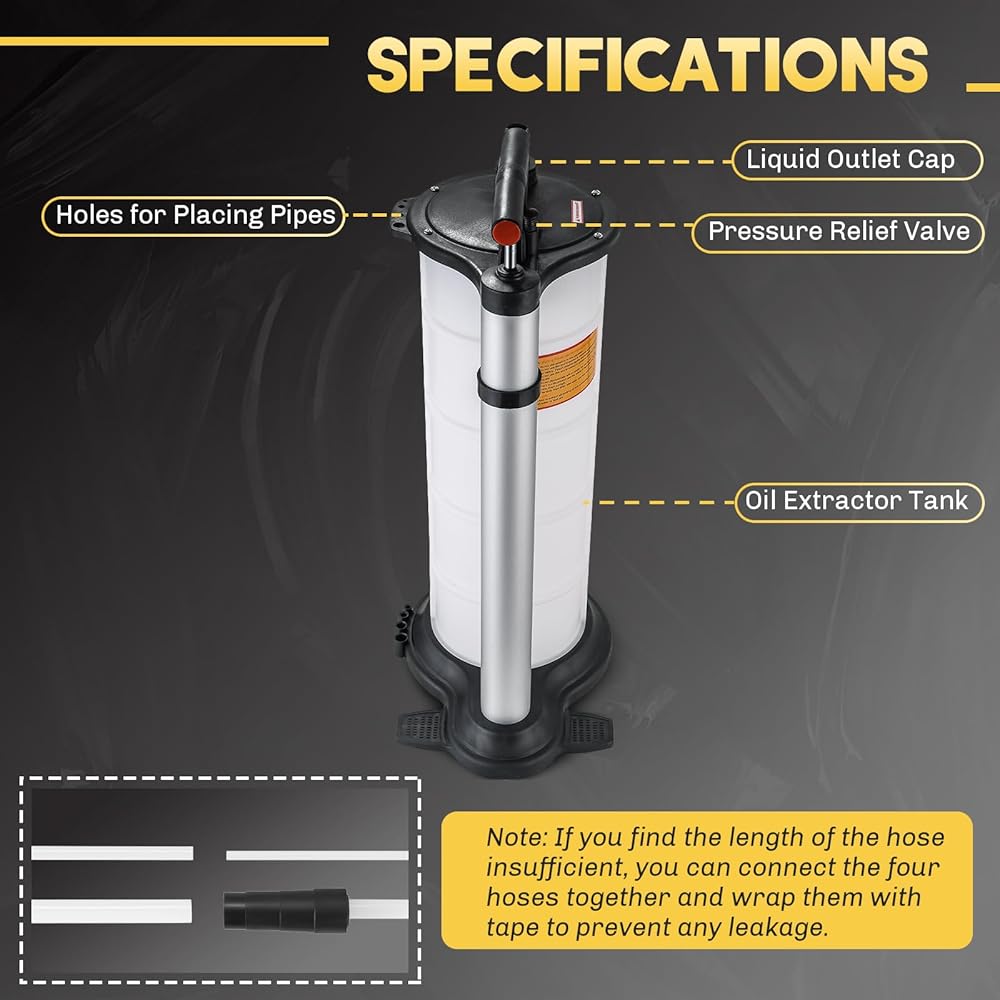 • [تصميم سهل الاستخدام] يضمن المقبض المريح للمضخة والبنية خفيفة الوزن تشغيلًا سهلاً، حتى لفترات طويلة. بالإضافة إلى ذلك، تسمح الخراطيم المضمنة بأقطار مختلفة بأقصى قدر من المرونة والوصول، مما يضمن إمكانية استخراج الزيت حتى من المناطق التي يصعب الوصول إليها.