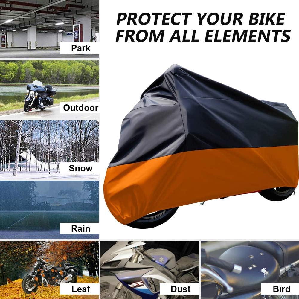 حماية محسنة للطقس - مصنوع من نسيج بوليستر متين، غطاء الدراجة النارية مقاس XXXL هذا يحمي دراجتك من الأوساخ والأشعة فوق البنفسجية للشمس والرمل المنفوخ وعصارة الأشجار وفضلات الطيور والحشرات والمطر والثلج والجليد وغيرها من العناصر. ستكون دراجتك النارية نظيفة ونقية في كل مرة تريد فيها الذهاب في جولة.