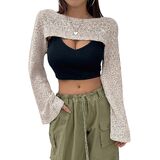 • النمط: بوليرو للسيدات، قمصان قصيرة الأكمام طويلة الأكمام، قمصان كروشيه مجوفة، قمصان y2k، ملابس y2k، قمصان علوية عصرية للنساء، قمصان للخروج للنساء
