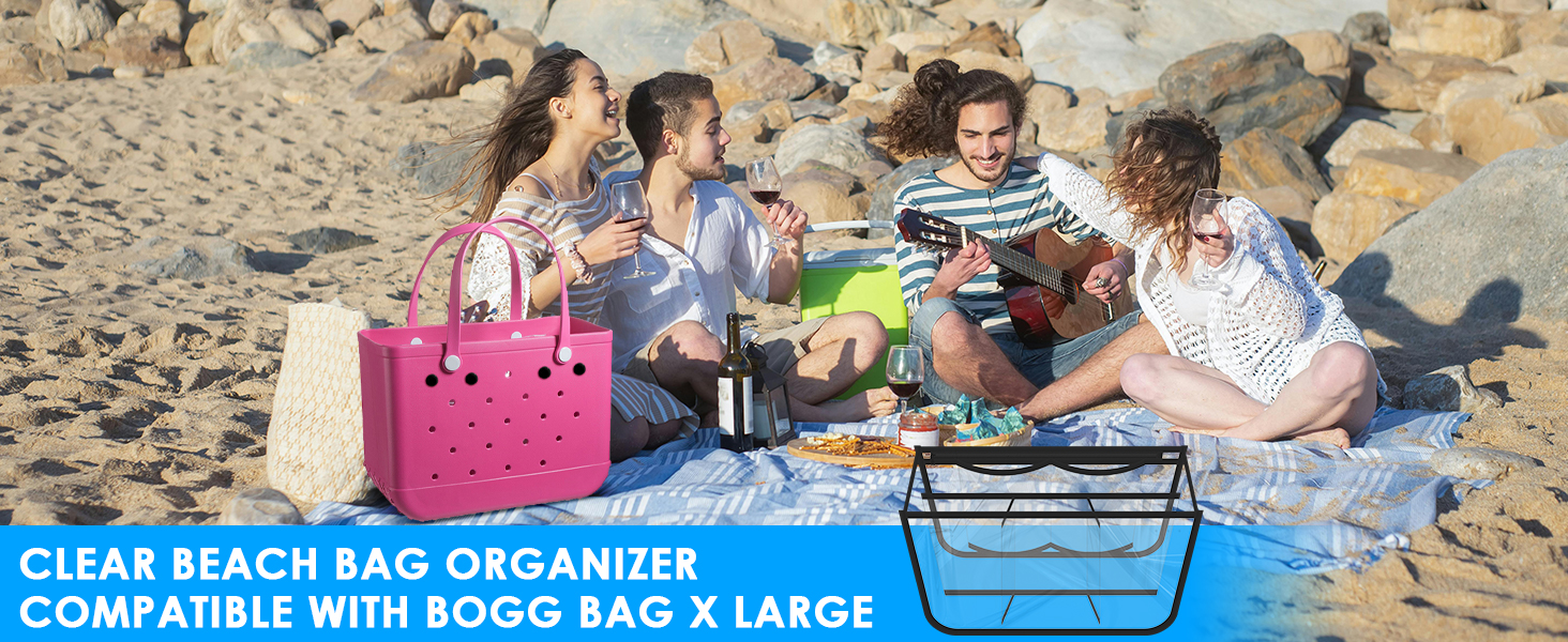ERKOON Clear Beach Bag Organizer الملحقات الأصلية لحقيبة Bogg X حقيبة تخزين كبيرة متوافقة مع حقيبة Bogg لتنظيم حقيبتك وتقسيم المساحة، 7 جيوب