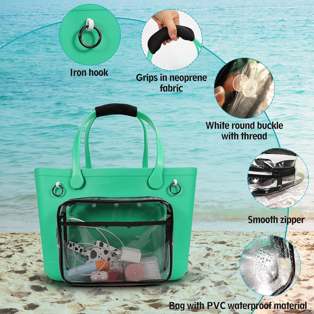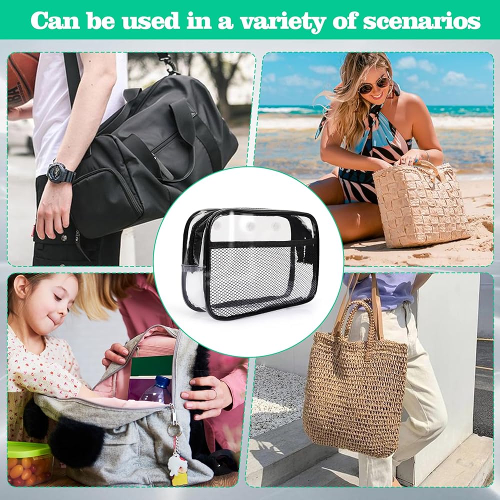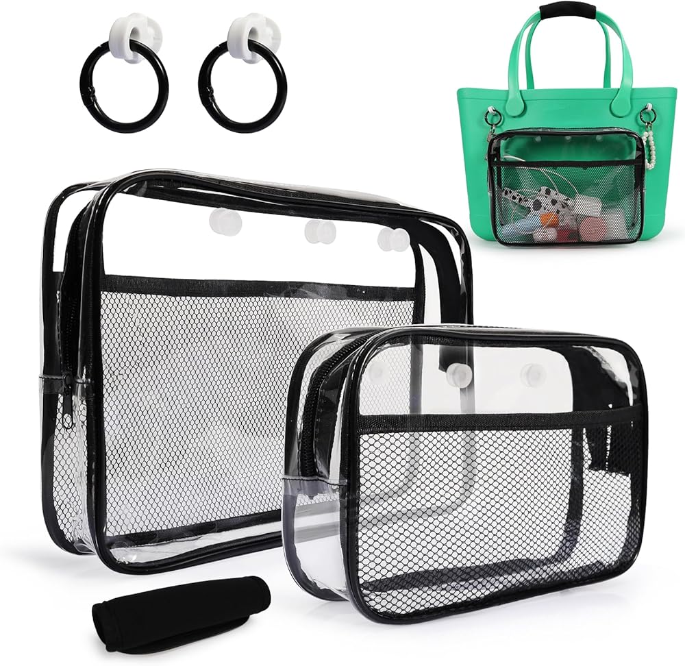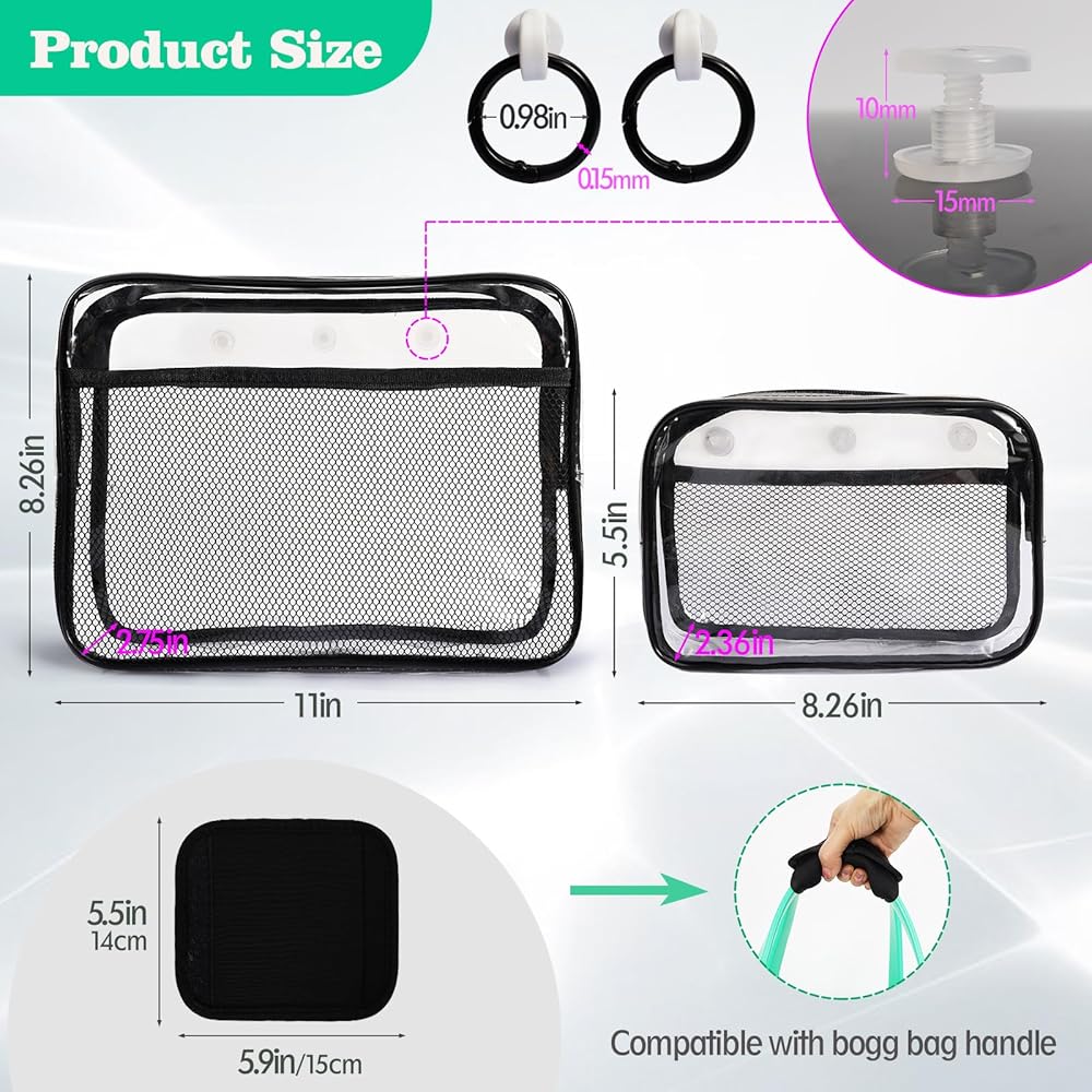 Two size bag: Our clear beaches tote bags inner pouches are avaliable in large and small size. The large size is 11” x 8.26”,and the small size is8.26” x 5.5”, they can meet your different storage needs