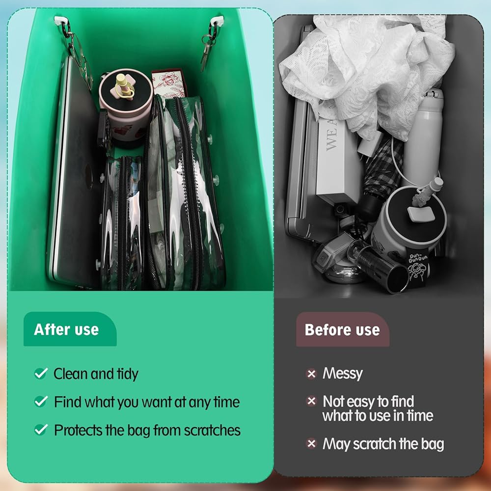 Portable & easy to clean: Our transparent designer insert bags with zipper in top, which is easy to store toothpaste, toothbrushes, makeup and so on. The lightweight bag is also easy to clean, suitable for travel, vacation and bathroom.