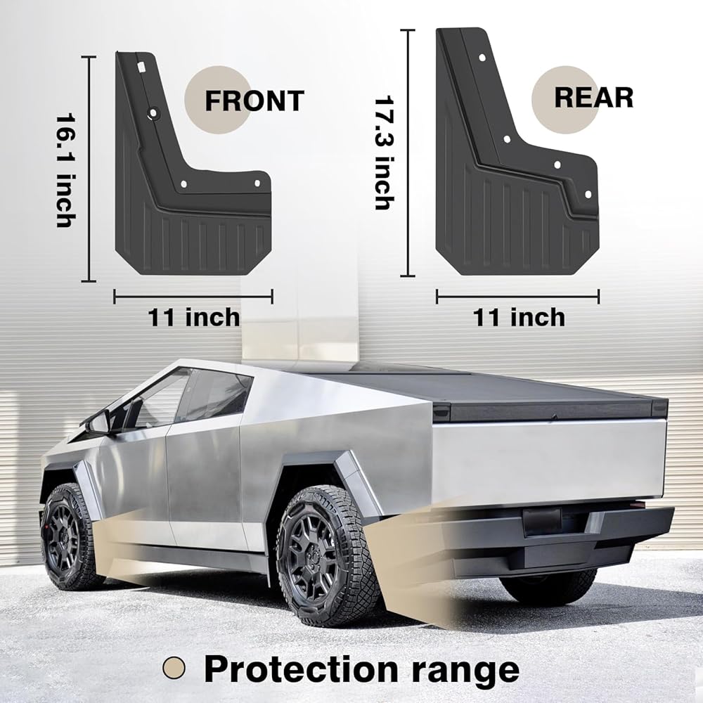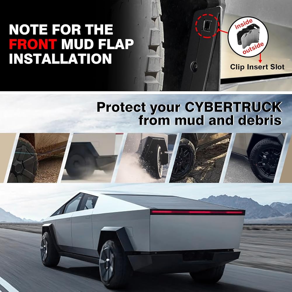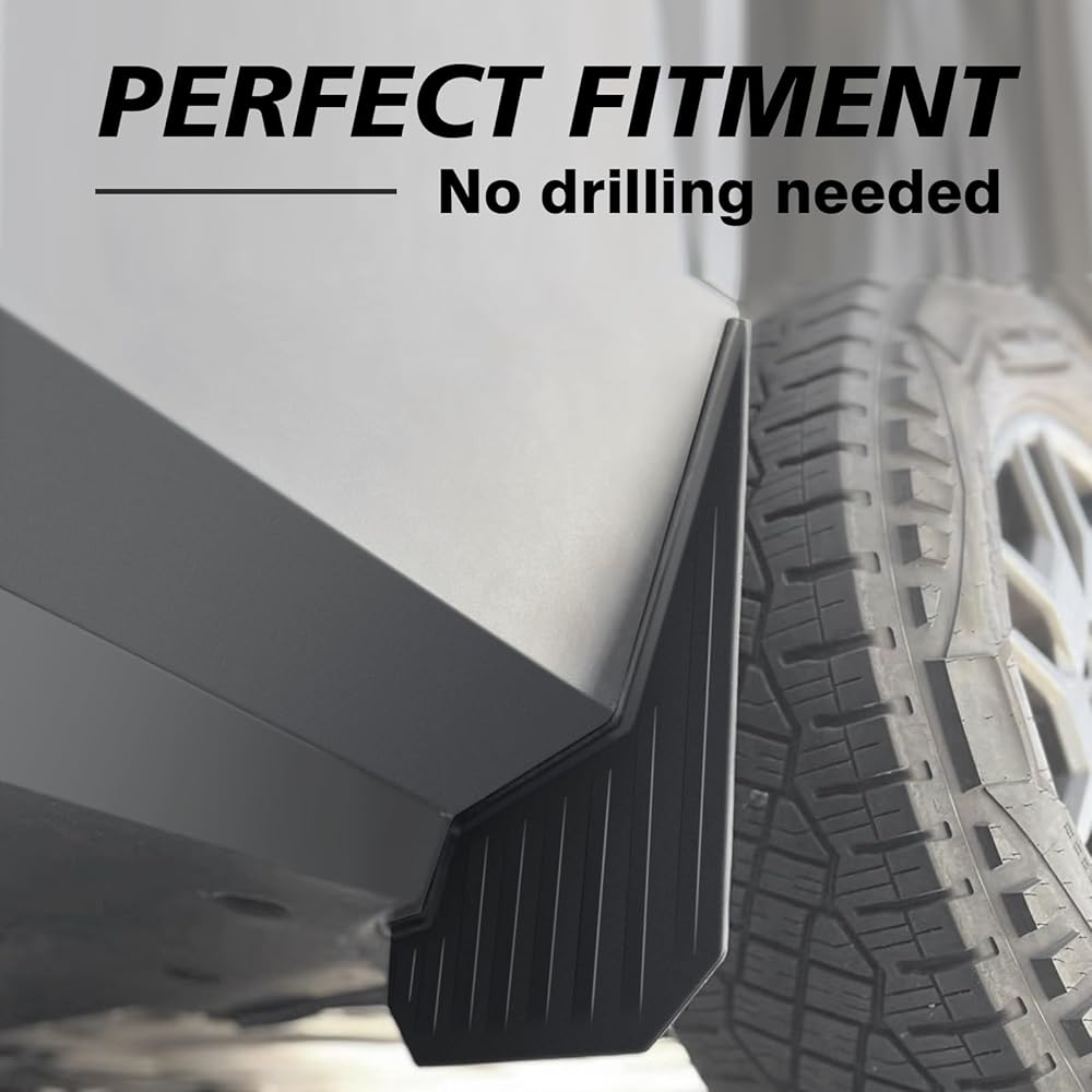 Perfect Fitment: Muslogy compatible with the 2024 Tesla Cybertruck Rally Style Mud Flaps are designed to blend with the OEM seamlessly. With precise measurements, we ensure a safe distance between the wheels and mud flaps, providing peace of mind in any driving condition.