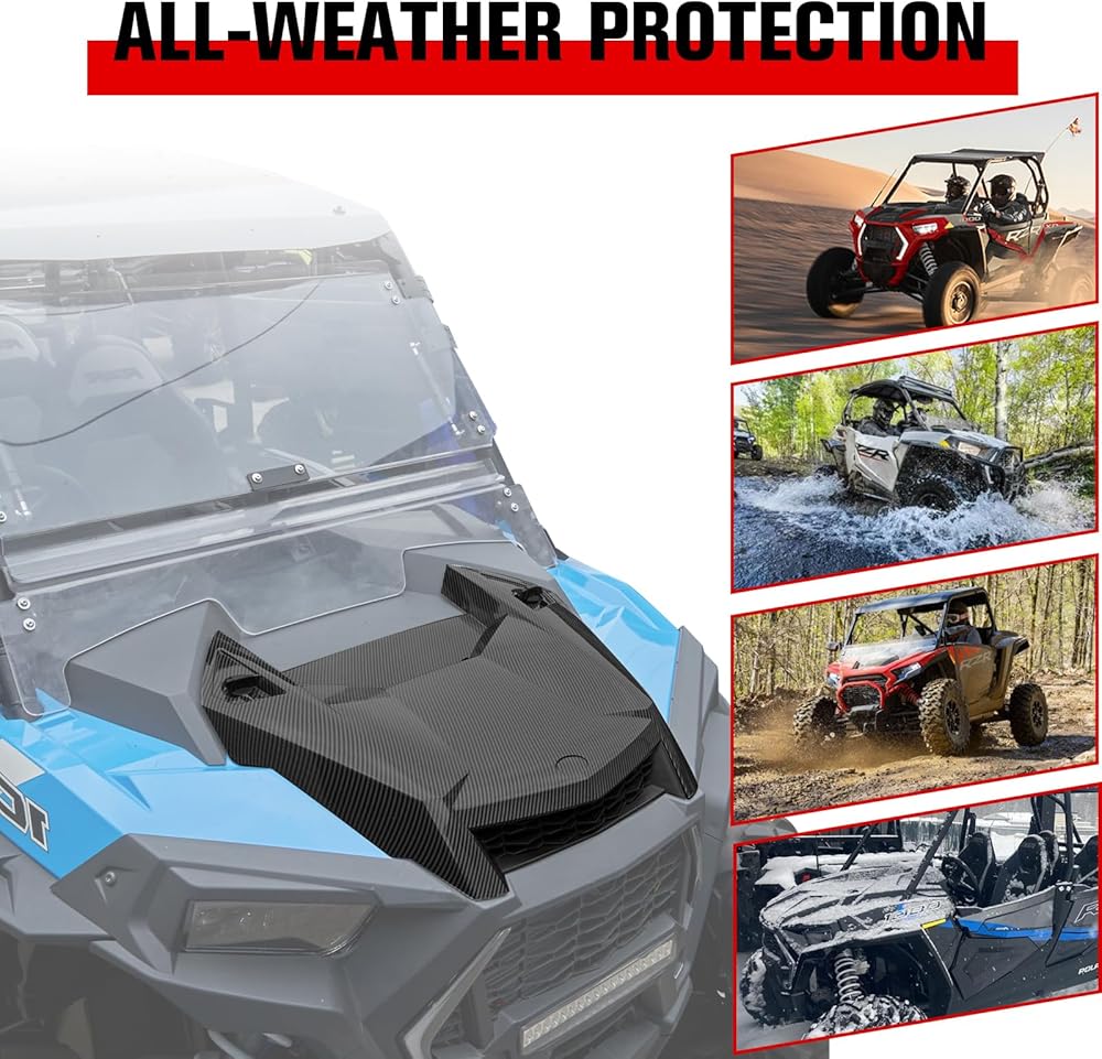 غطاء محرك السيارة متوافق مع Polaris RZR XP 1000 / XP 4 1000 / Turbo XP 4 / Turbo S/Turbo S 4 𝟮𝟬𝟭𝟵-𝟮𝟬𝟮𝟯، استبدال فتحة تهوية مدخل الهواء من ألياف الكربون لـ # 5454429-632