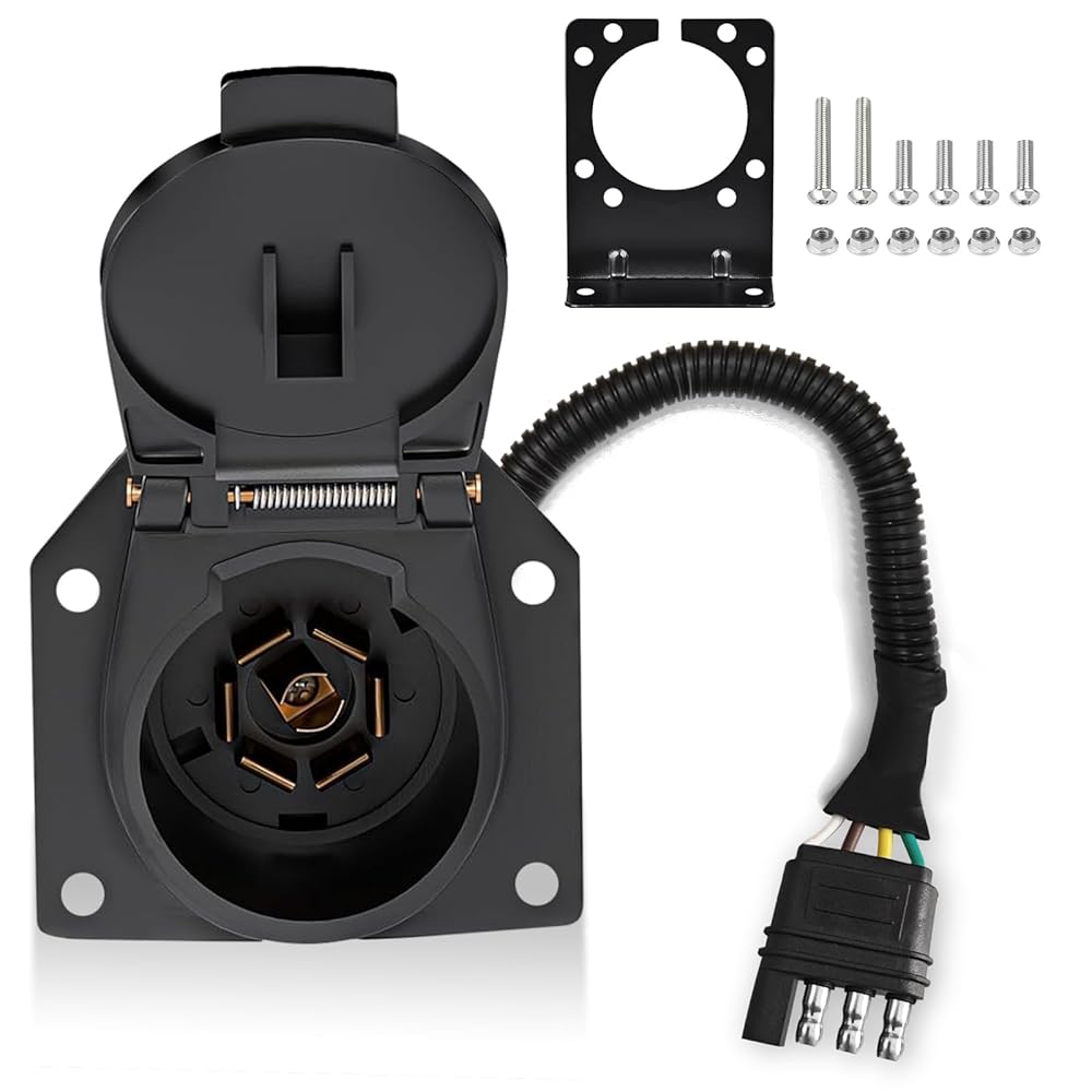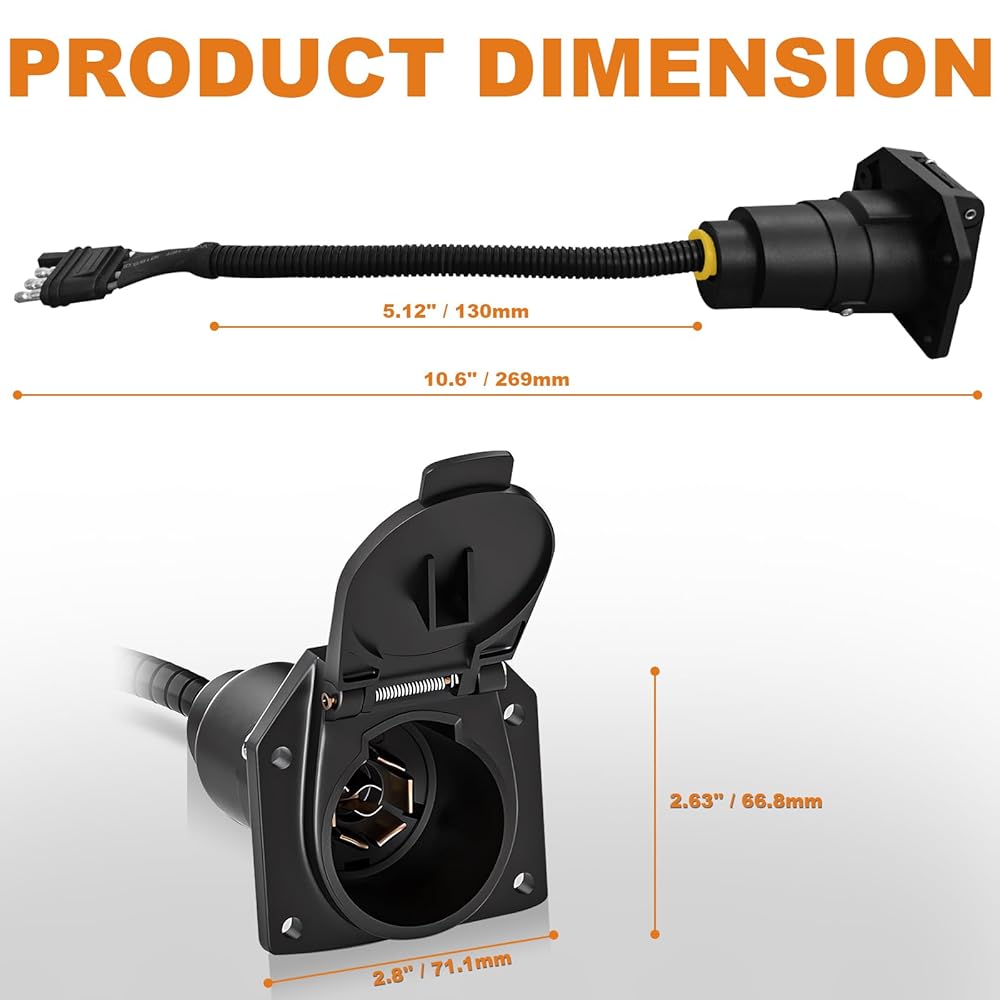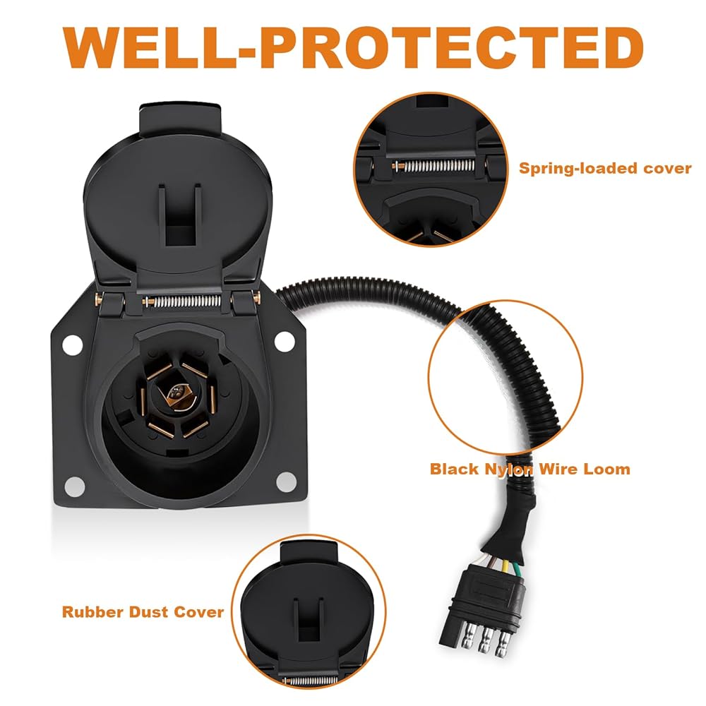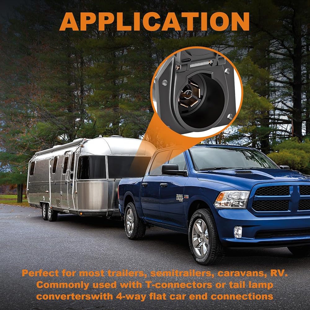 • الاستخدام: يفتح مقبس موصل المقطورة ذو 7 دبابيس بزاوية 180 درجة لسهولة التوصيل. نطاقات الجهد: 6-24 فولت. تصميم للمركبات التجارية/المقطورات/RVs/الشاحنات/شبه المقطورات/السيارات/الكرفانات، إلخ