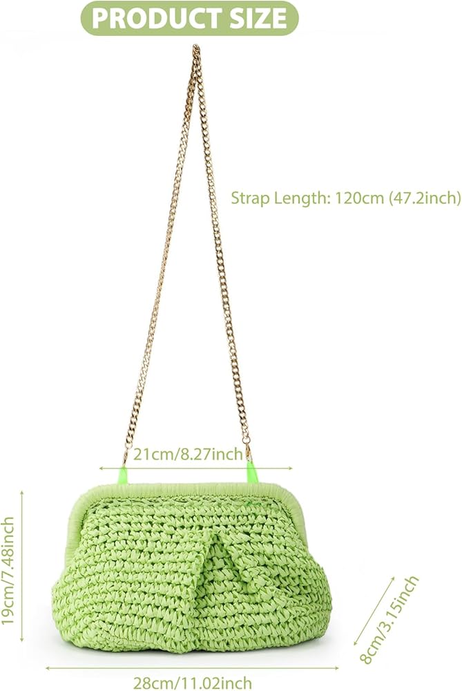 مريحة وعملية: مصممة بحزام كتف من سلسلة معدنية، يمكن ارتداء هذه المحفظة كحقيبة كتف أو حقيبة كروس، مما يوفر لك خيارات حمل متعددة. سواء كنت متجهًا إلى الشاطئ أو خارجًا لقضاء ليلة في المدينة، فهذه الحقيبة أنيقة وعملية
