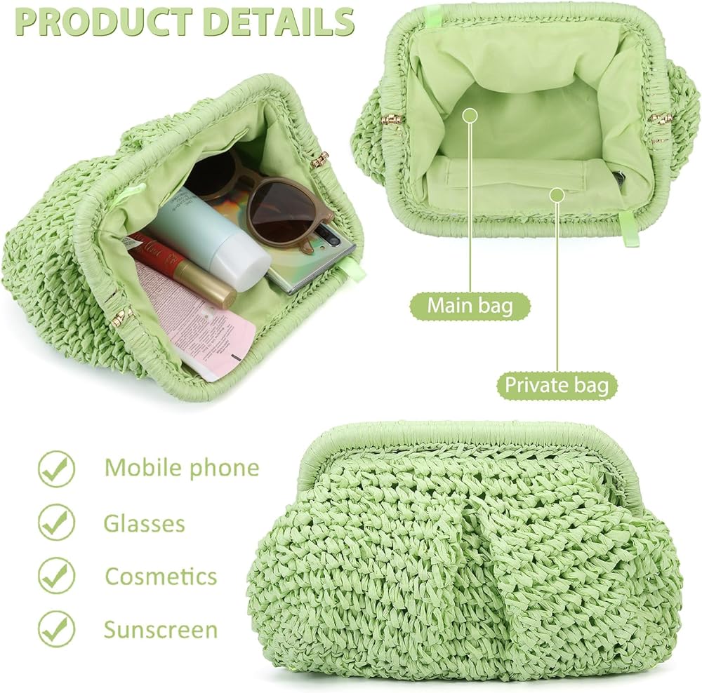 مثالية للمغامرات الصيفية: سواء كنت تحضر حفلة على الشاطئ، أو تذهب في عطلة استوائية، أو ببساطة تستمتع بيوم في الشمس، فإن هذه المحفظة المصنوعة من القش هي الإكسسوار الصيفي المثالي. تصميمه خفيف الوزن وجيد التهوية يجعله مريحًا للحمل طوال اليوم، في حين أن مظهره الأنيق سيجعلك مميزًا بين الآخرين