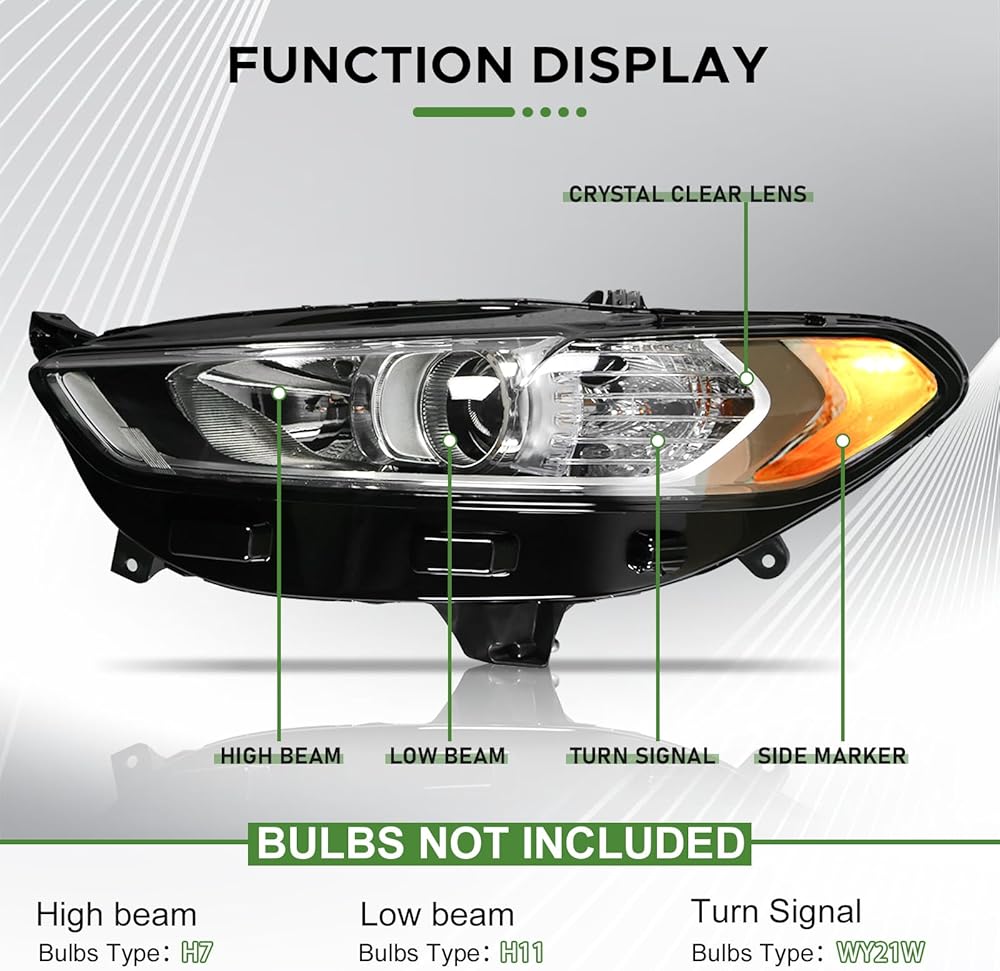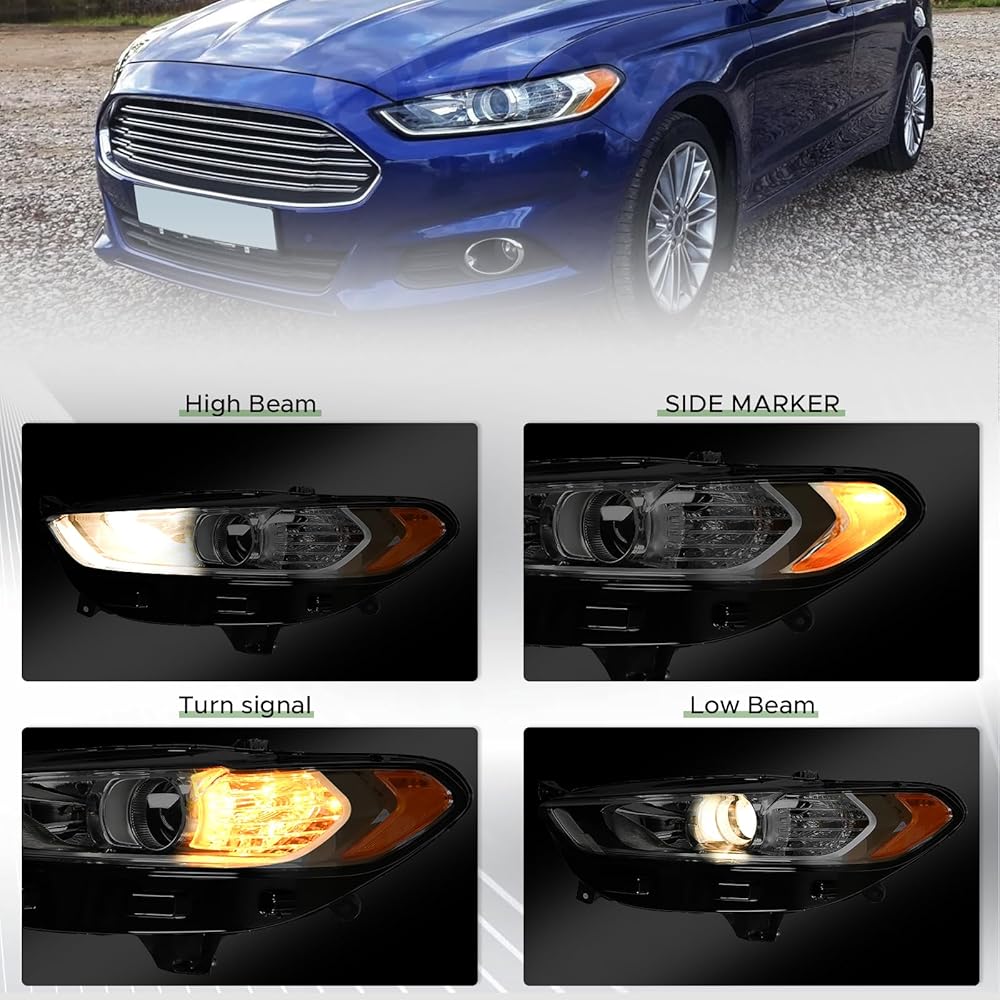 [ملاءمة السيارة] مجموعة المصابيح الأمامية الهالوجين متوافقة مع Ford Fusion 2013-2016. مناسب فقط لنماذج المصابيح الأمامية الهالوجين في المصنع.