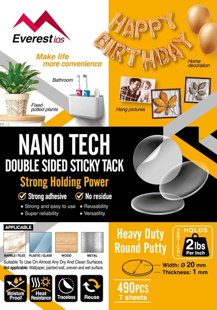سهل الاستخدام: المعجون اللزج سهل الاستخدام ولا يتطلب أي أدوات. ما عليك سوى إزالة الطبقة الواقية من أحد جوانب المعجون والضغط عليها على السطح المطلوب. يمكن إزالته بسهولة دون ترك أي بقايا.