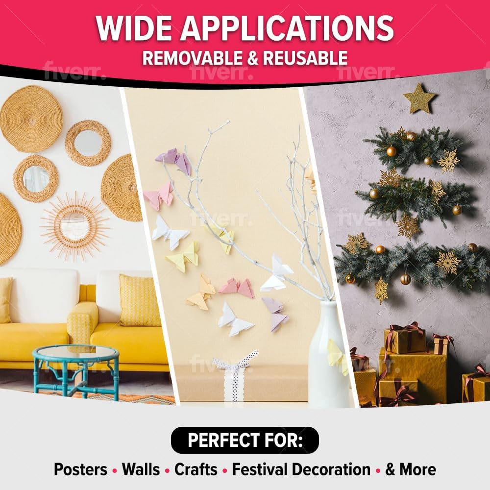 تطبيقات واسعة: المعجون اللاصق مثالي للملصقات والجدران والحرف اليدوية وتزيين المهرجانات والمزيد. يمكن استخدامه للصق الملصقات والصور والملاحظات والمذكرات والمزيد.