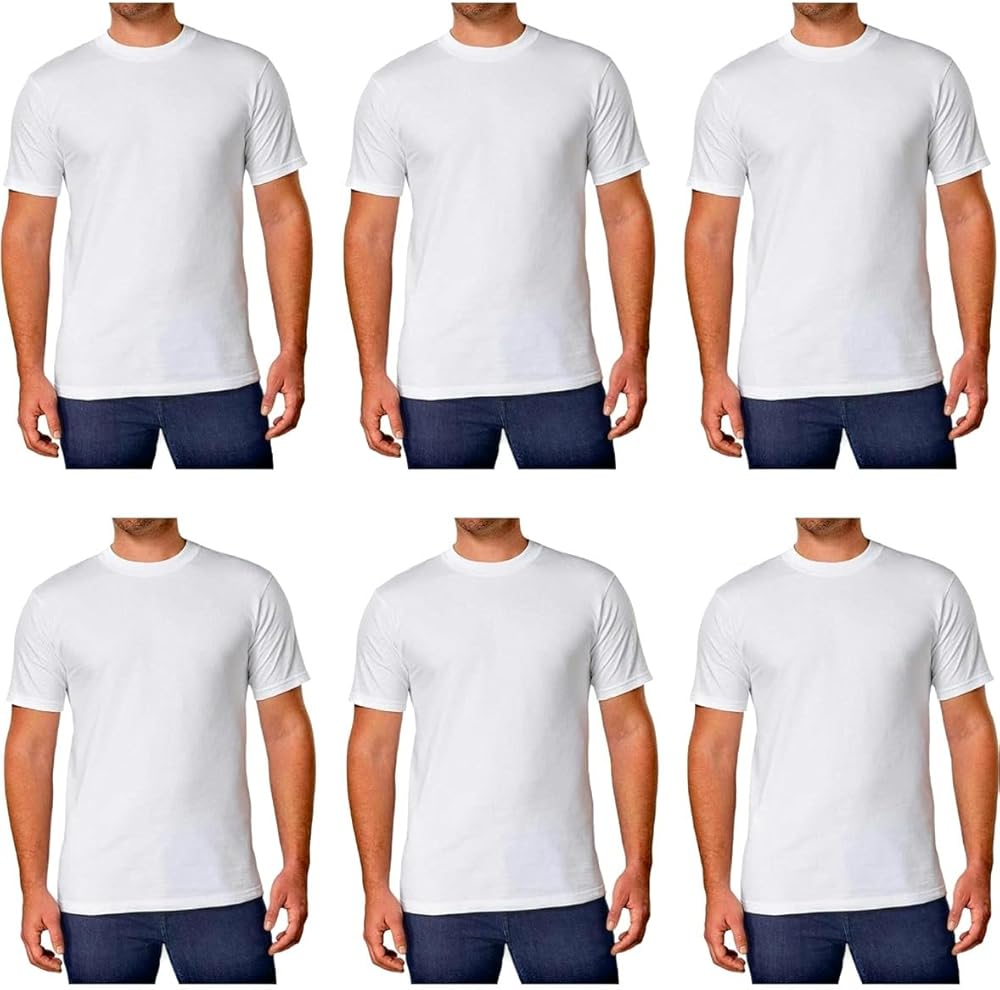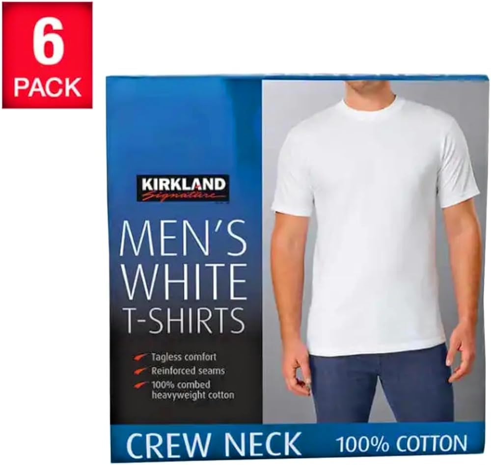 تي شيرت رجالي من Kirkland Signature برقبة دائرية 100% من القطن الثقيل الممشط (عبوة من 6 قطع)، أبيض، مقاس كبير