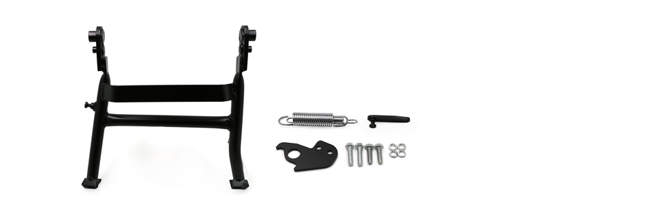 • حامل مركزي لا غنى عنه: سوف تكون دراجتك النارية ثابتة للغاية عندما تكون عليها وتبقي الإطار الخلفي بعيدًا عن الأرض بضع بوصات، مما يجعل من السهل جدًا تغيير الإطار الخلفي، وصيانة السلسلة، ومواقف السيارات، وتنظيف الدراجة.