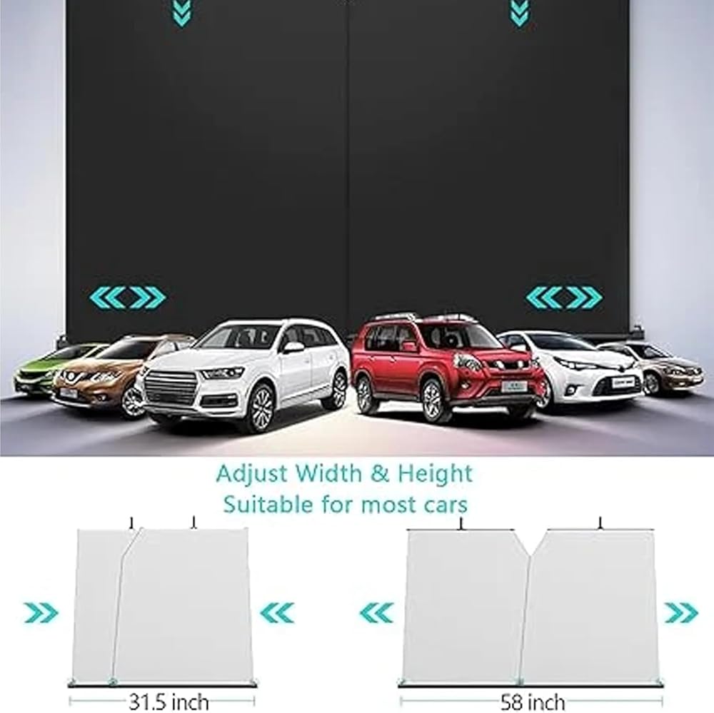 • 【Powerful blocking of UV rays and heat】This windshield sunshade is composed of 4 layers of thickened PET film, and its independent sun visor can effectively block 99% of UV rays. After installation, your car interior will be protected from sunlight, keeping the car cool, and can appropriately save energy consumption caused by turning on the air conditioner.