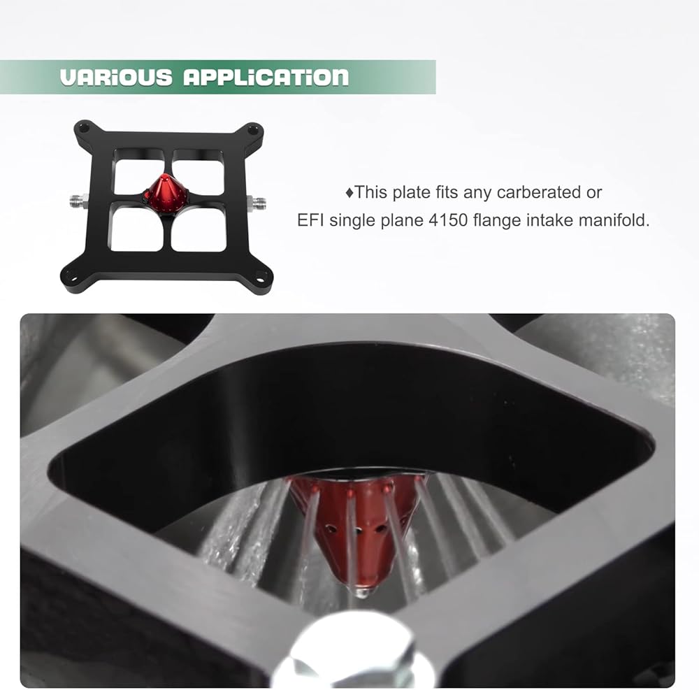 【VARIOUS APPLICATION】This Nitrous Plate is designed for any carberated or EFI single plane 4150 Flange Carbureted Style Intake Manifolds.