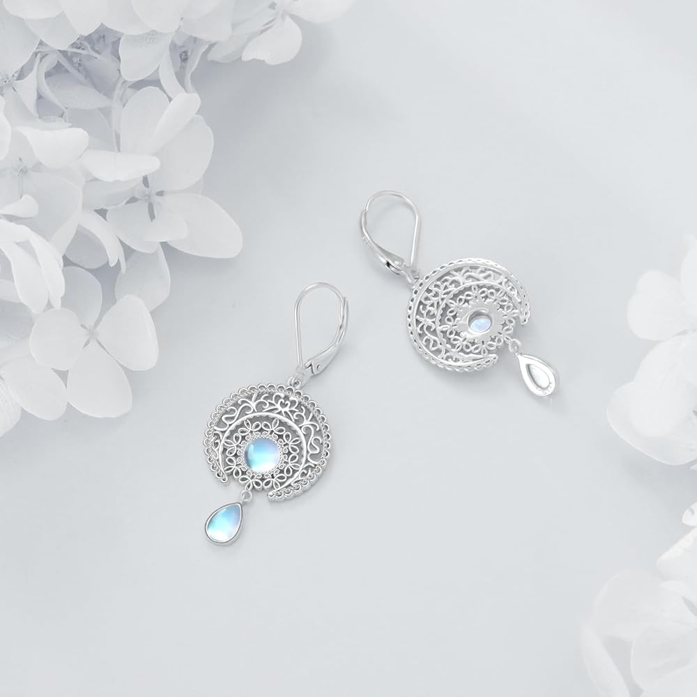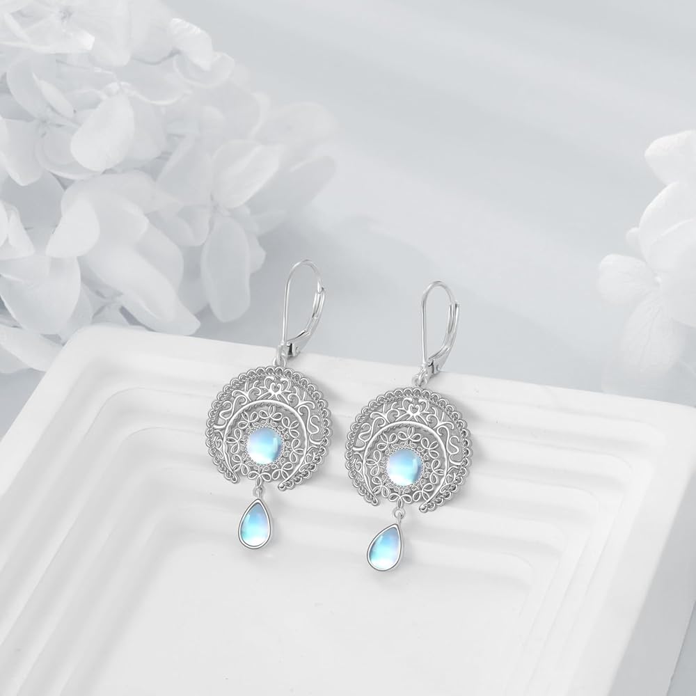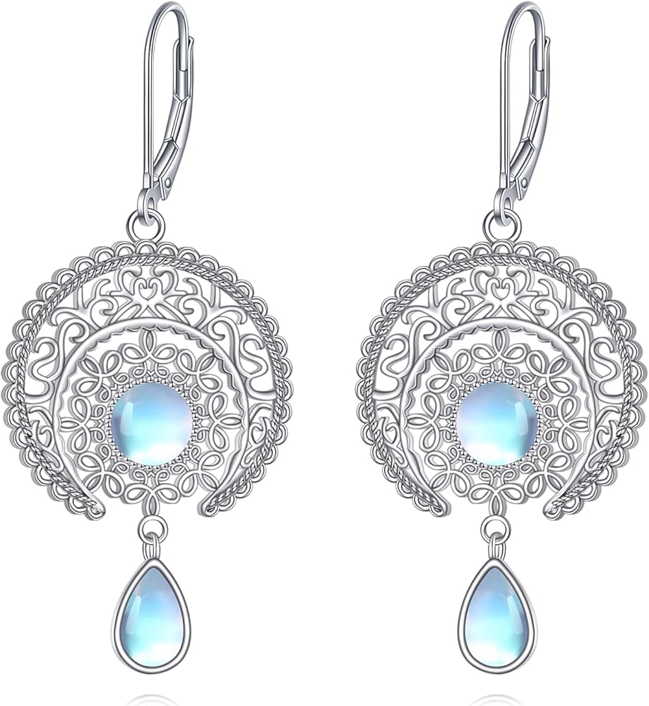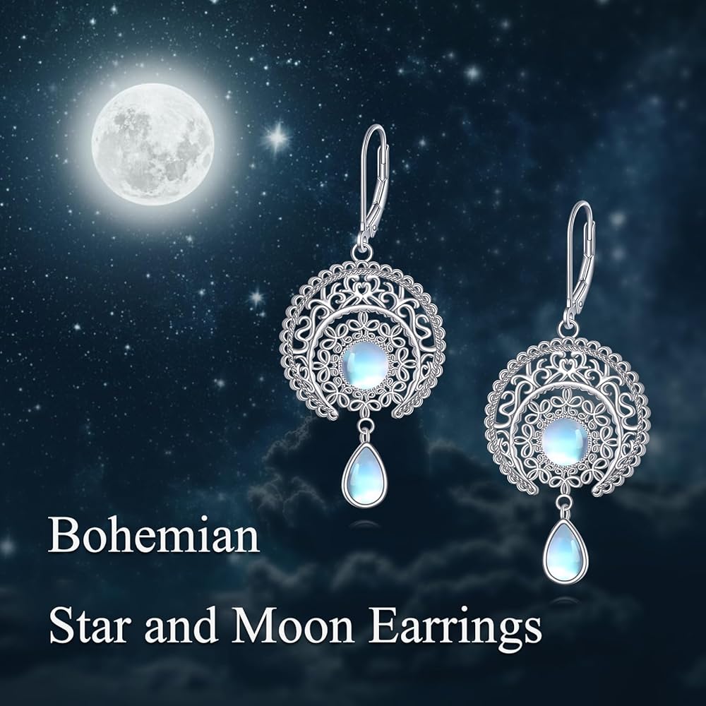 أقراط من حجر القمر والنجمة من الفضة الإسترلينية على شكل هلال وقمر متدلية هدايا مجوهرات للنساء والفتيات المراهقات