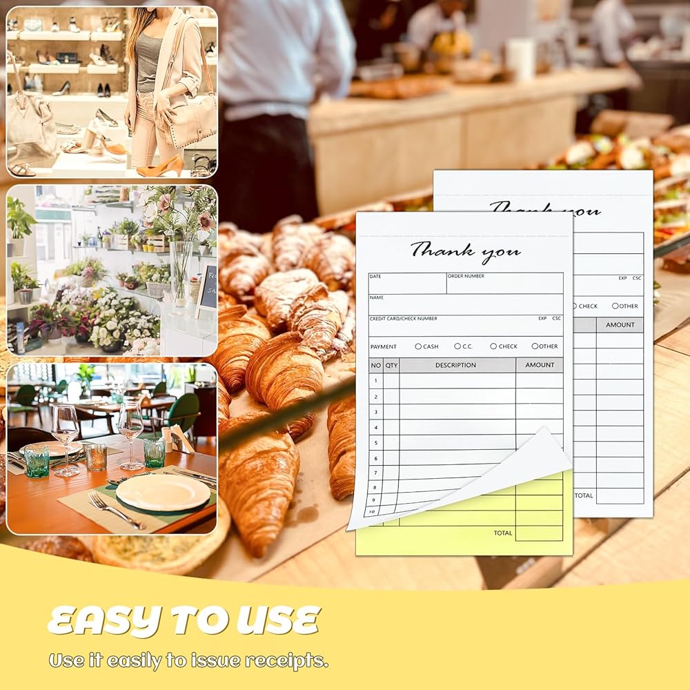 متعدد الأغراض: يمكن استخدام دفتر إيصالات شكرًا لك كإيصالات مبيعات وفواتير وأوامر مبيعات وتقارير خدمة وأوامر عمل والمزيد. يمكن للمطاعم والشركات الصغيرة والمخابز وبائعي الزهور وأكشاك الطعام ومتاجر البيع بالتجزئة ومقدمي الخدمات استخدامها بسهولة لإصدار الإيصالات وتتبع المبيعات وتسجيل المدفوعات