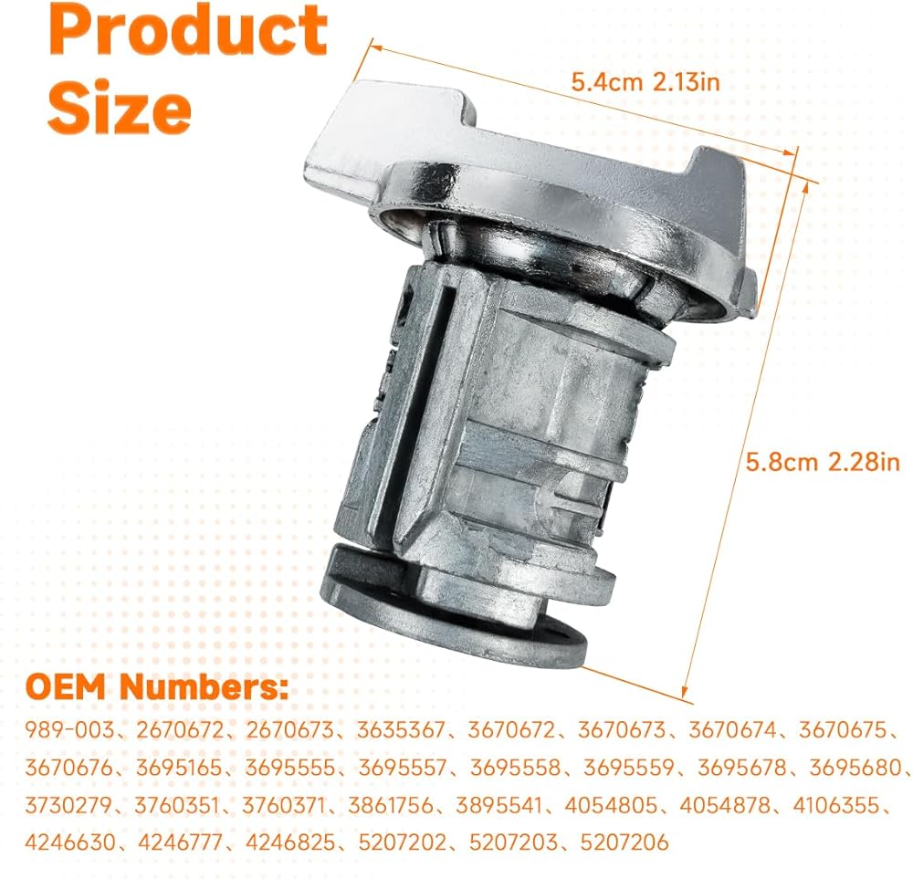 Ignition Lock Cylinder with Keys for 989-003, 2670672, 2670673, 3635367, 3670672, 3670673, 3670674, 3670675, 3670676, 3695165, 3695555, 369555, 3695557, 3695558, 3695559, 3695678, 3695680, 3730279, 3760351, 3760371, 3861756, 3895541, 4054805, 4054878, 4106355, 4246630, 4246777, 4246825, 5207202, 5207203, 5207206