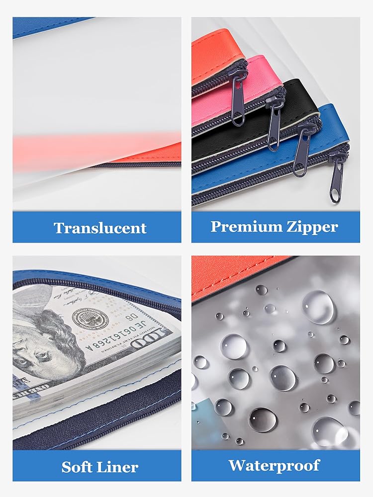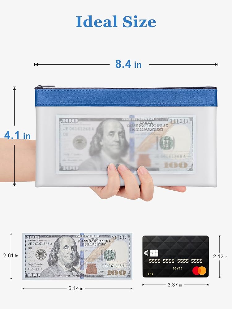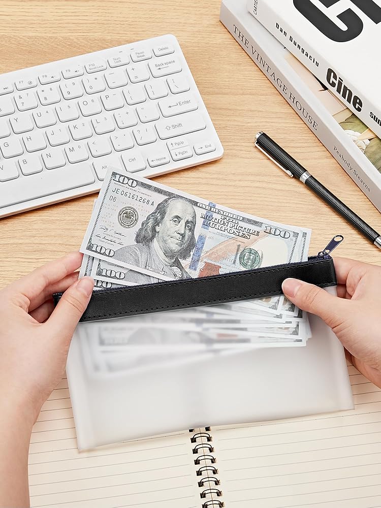 تصميم محمول وصغير الحجم: يبلغ مقاس كل حقيبة نقود 8.4 × 4.1 بوصة (205 مم × 105 مم)، مما يوفر حجمًا متوسطًا مثاليًا لتنظيم الفواتير والعملات المعدنية والشيكات والفواتير واللوازم المكتبية الصغيرة وغيرها من العناصر ذات الأبعاد المشابهة. خفيفة الوزن وقابلة للحمل، ويمكن وضعها بسهولة في حقيبة اليد لسهولة الحمل أو يمكن وضعها بشكل مستقيم على الرف لتخزين أنيق.
