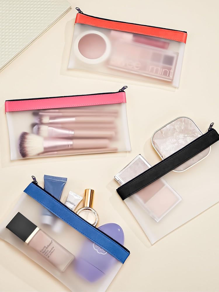 مادة شفافة: حقائب نقود بسحاب مصنوعة من مادة PVC الشفافة المتينة مع ملمس سطحي بلوري. تضمن هذه المادة إمكانية رؤية الخطوط العريضة للمحتويات بنظرة سريعة، دون أن تكون واضحة تمامًا من أجل حماية الخصوصية.