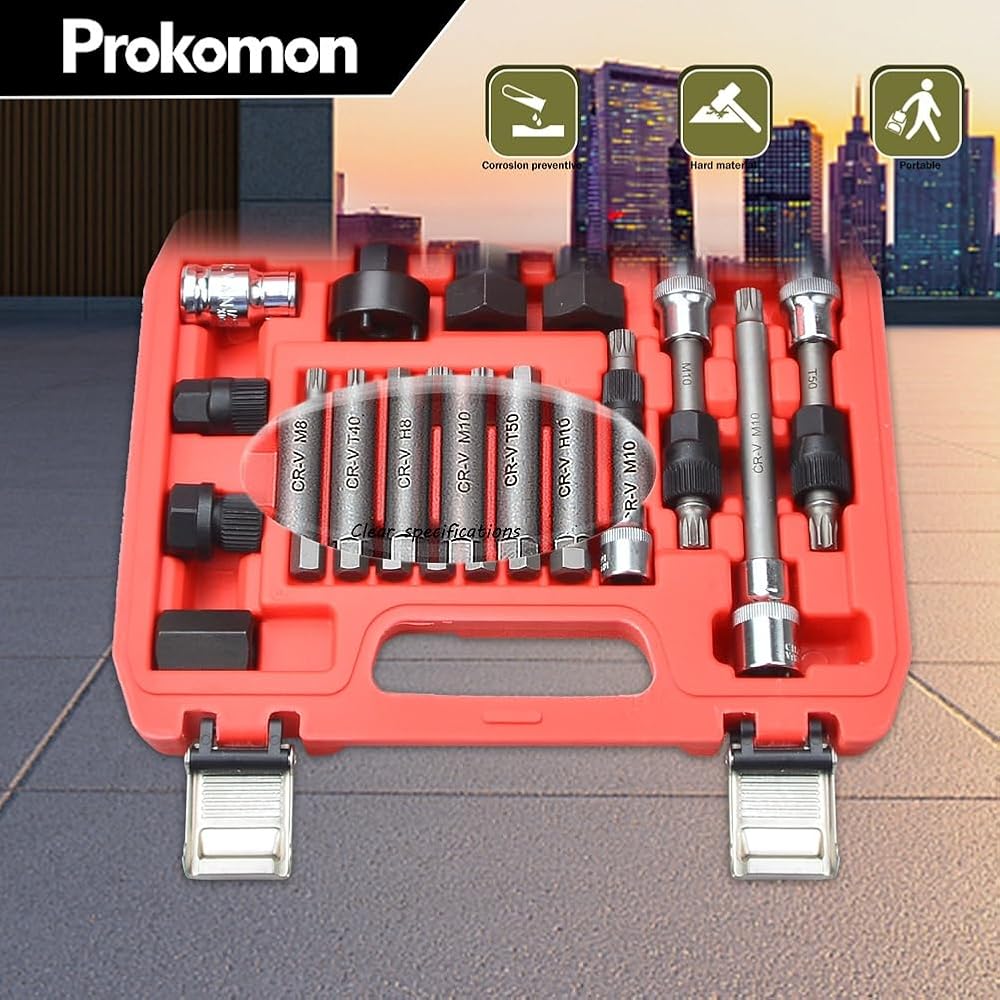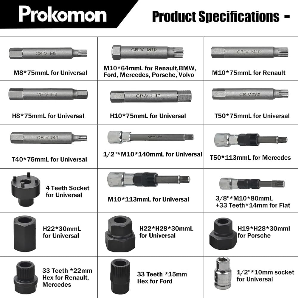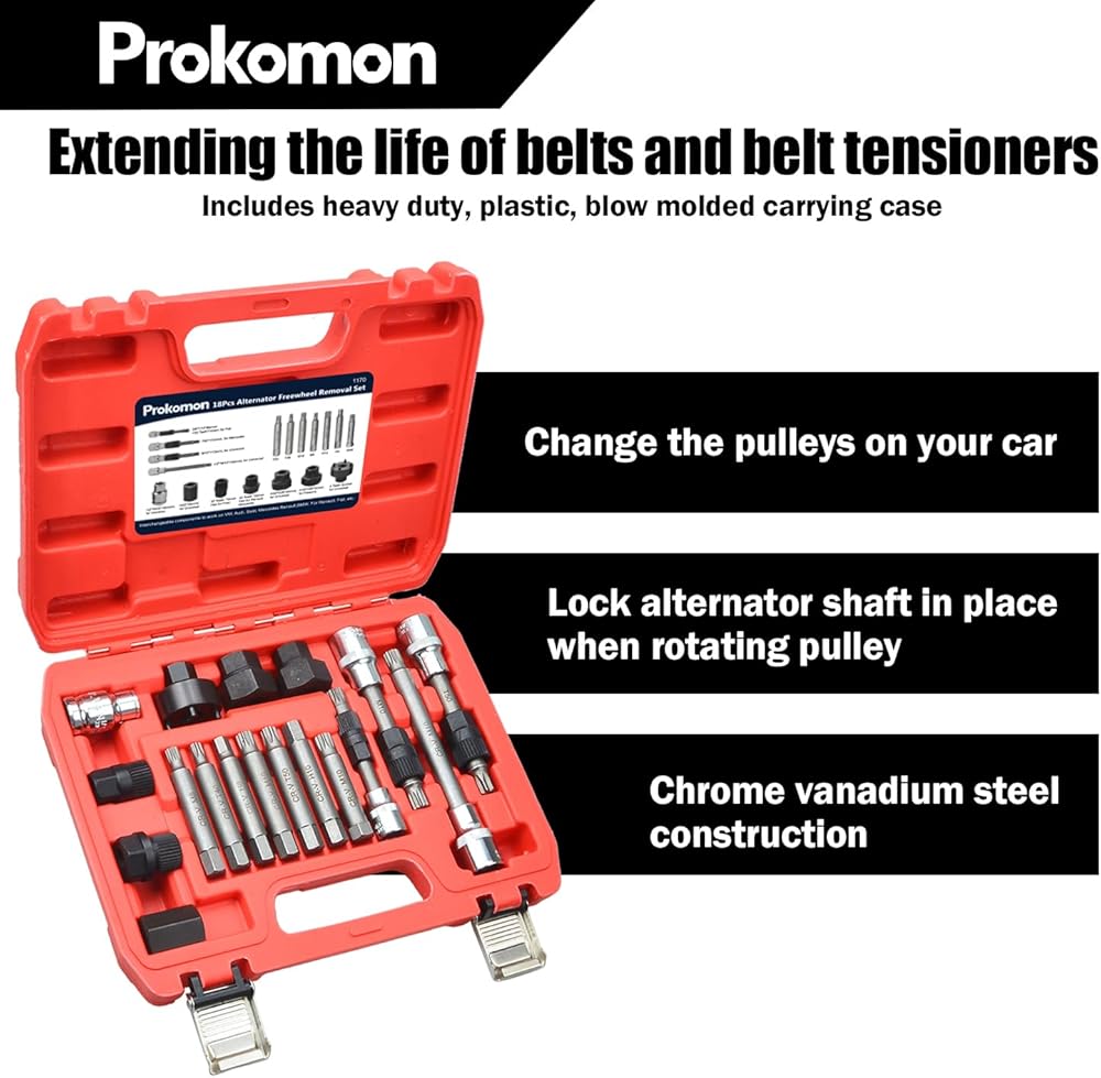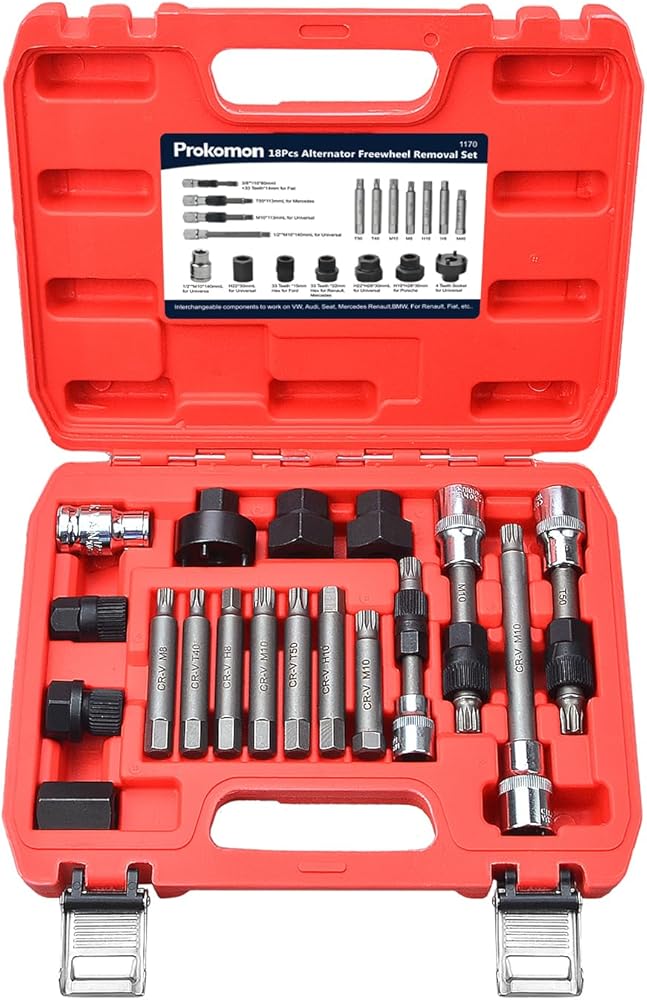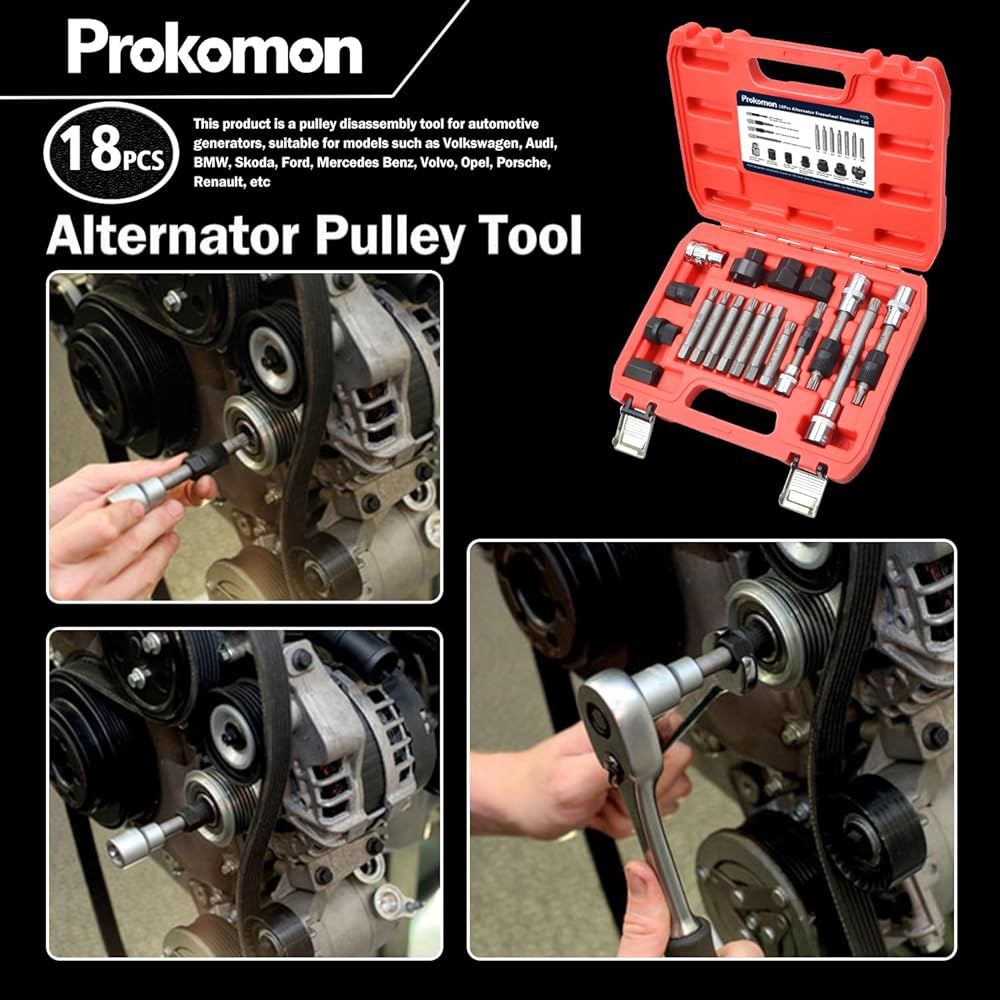مجموعة أدوات بكرة المولد 18 قطعة من بروكومون، أداة إزالة بكرة المولد، مجموعة أدوات مجموعة مقابس الإدخال - أداة سحب وفصل بكرة السيارة