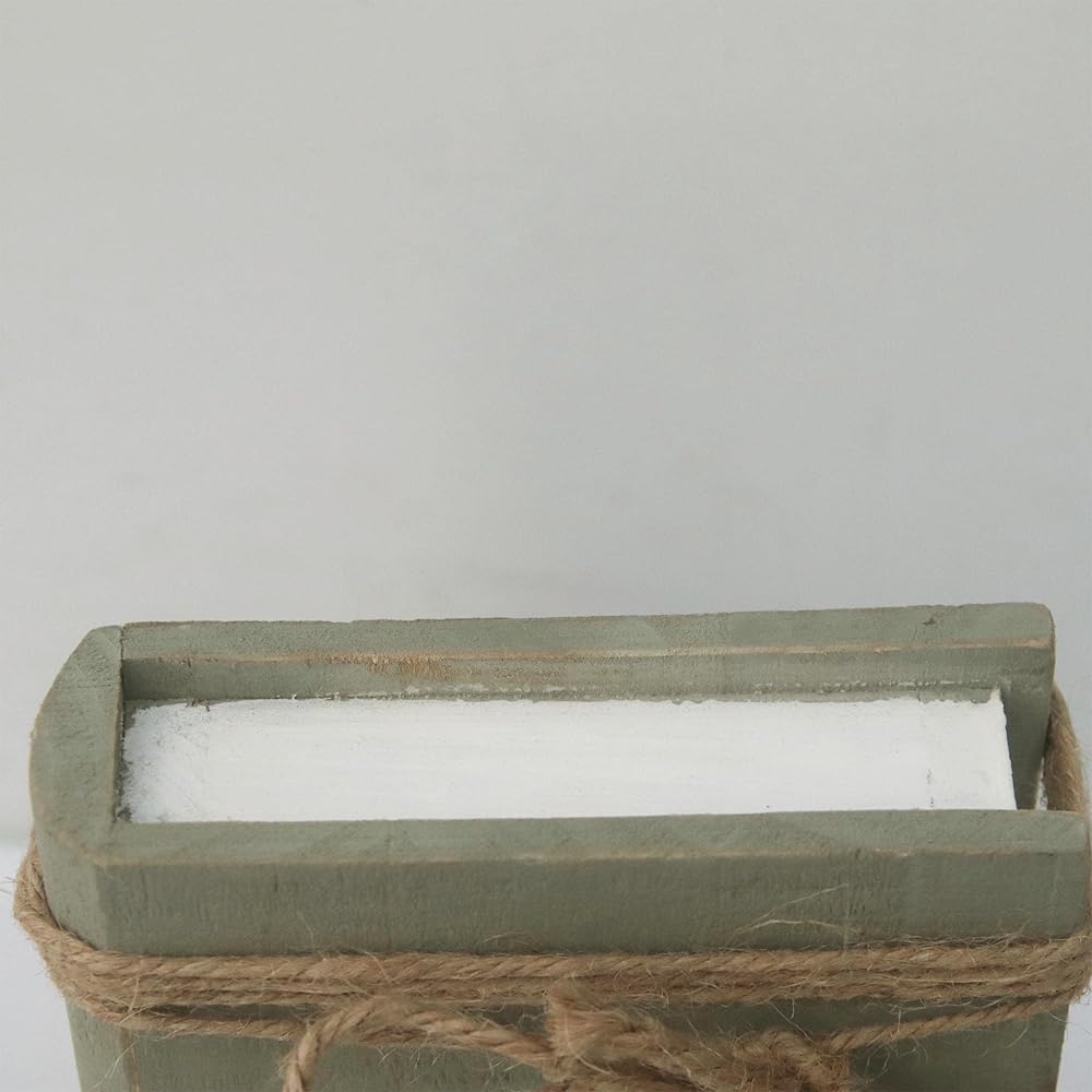 يبلغ مقاس الكتب الخشبية المزخرفة الريفية حوالي 11.43 سم عرضًا × 5.08 سم عمقًا × 16.51 سم ارتفاعًا وتزن 0.33 كجم.