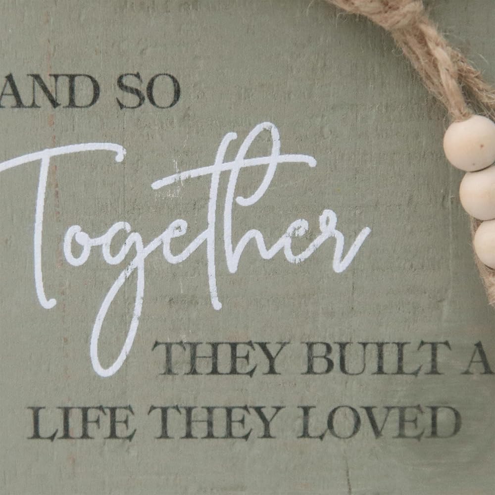 أضف أجواء دافئة إلى غرفتك، مطبوعة بالكلمات "ومعًا قاموا ببناء حياة أحبوها"، يمكن استخدامها في أي مساحة، بسيطة وقديمة، مما يضيف سحر بيت المزرعة.