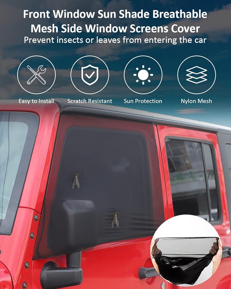 الطرز المتوافقة: شبكة قابلة للتنفس لظل النافذة الأمامية تناسب سيارة Jeep Wrangler TJ JK JKU JL JLU وتناسب Gladiator JT 1997-2022