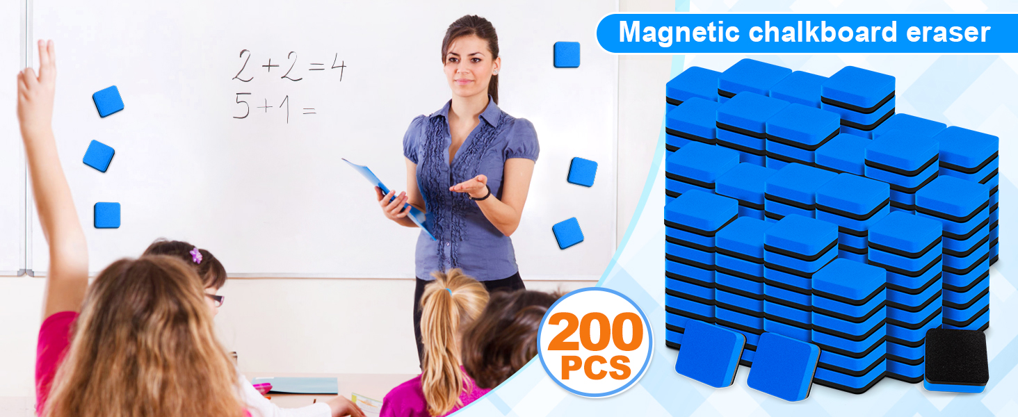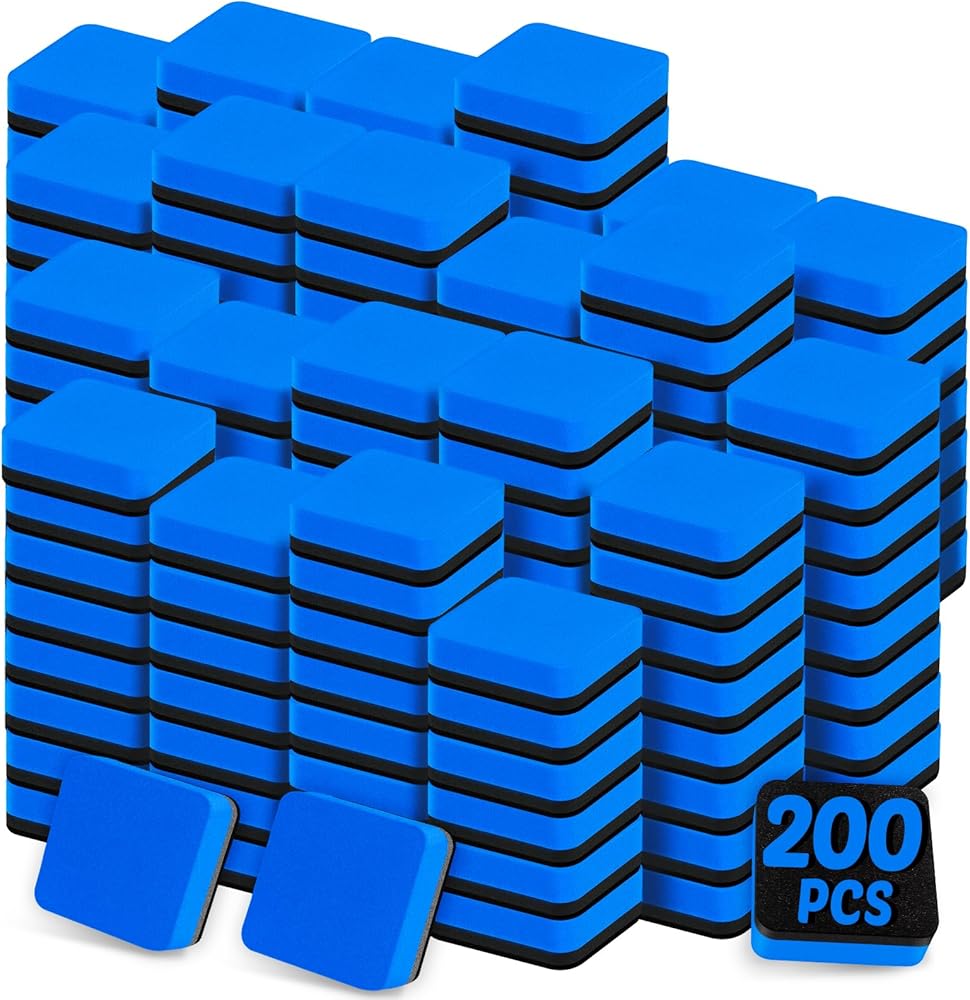 ممحاة السبورة البيضاء المغناطيسية: 200 ممحاة سبورة بيضاء مقاس 1.97 × 1.97 بوصة / 5 × 5 سم، مثالية لمستلزمات العودة إلى المدرسة، فهي ممتازة للطلاب وسهلة الإمساك والاستخدام لأيديهم الصغيرة.