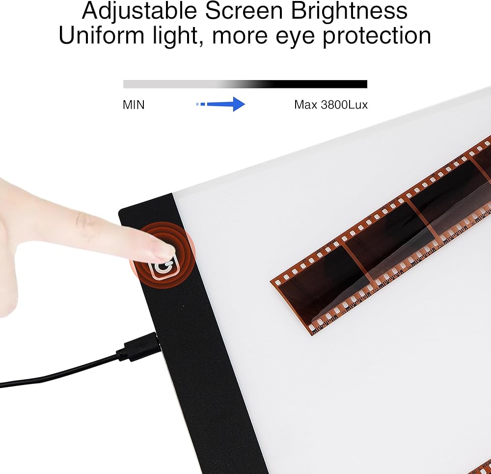 لوحة إضاءة عارض الشرائح، إضاءة خلفية للعارض السلبي، فيلم سلبي وشرائح قديمة، صندوق إضاءة مسح ضوئي بحجم A4 مع 3 مستويات سطوع