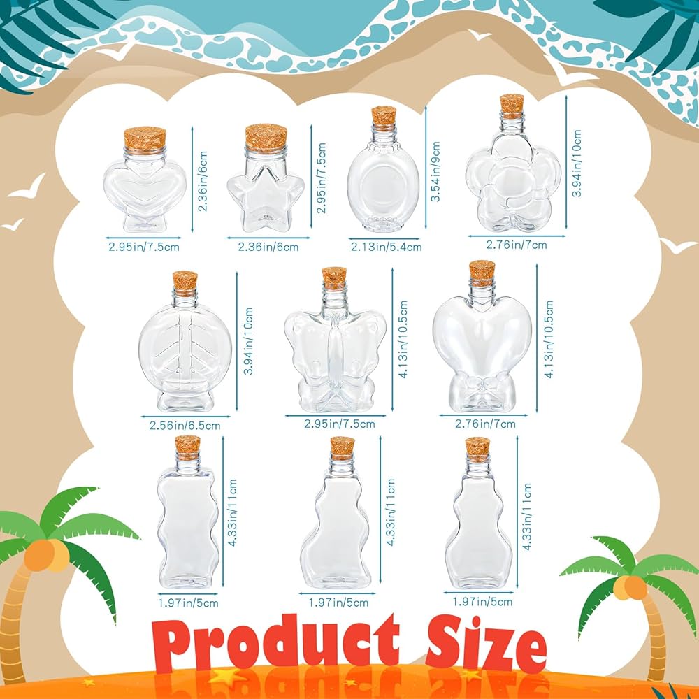 مكان الاستخدام: الزجاجات الشفافة ذات الفلين مناسبة للعديد من الأماكن والمناسبات، مثل المنزل والمكتب والمتاجر والمزيد، مما يسمح للأشخاص بتزيين أعياد ميلادهم وحفلات الزفاف والحفلات وغيرها من المناسبات المهمة.