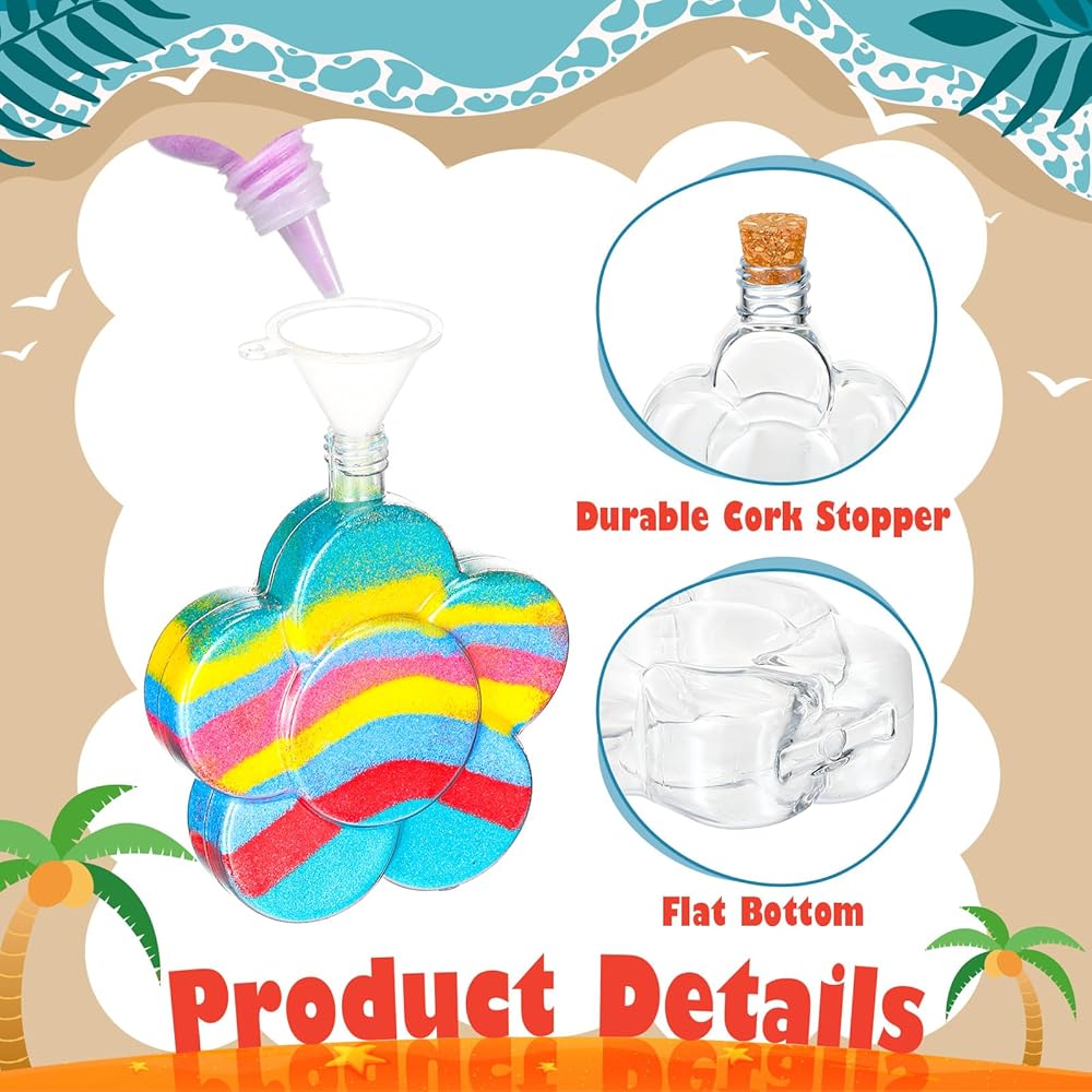 تشمل العبوة: يوجد 50 قطعة من الزجاجات الفنية الرملية في العبوة، تأتي مع 10 أشكال مختلفة، مثل الدائري والقلب والفراشة وأكثر من ذلك، كل شكل يحتوي على 5 قطع، يمكنك الاختيار حسب رغبتك، وتأتي الزجاجات مع الفلين ، ويوجد نوعان مختلفان من مسارات التحويل في العبوة، كل نوع يحتوي على 5 قطع