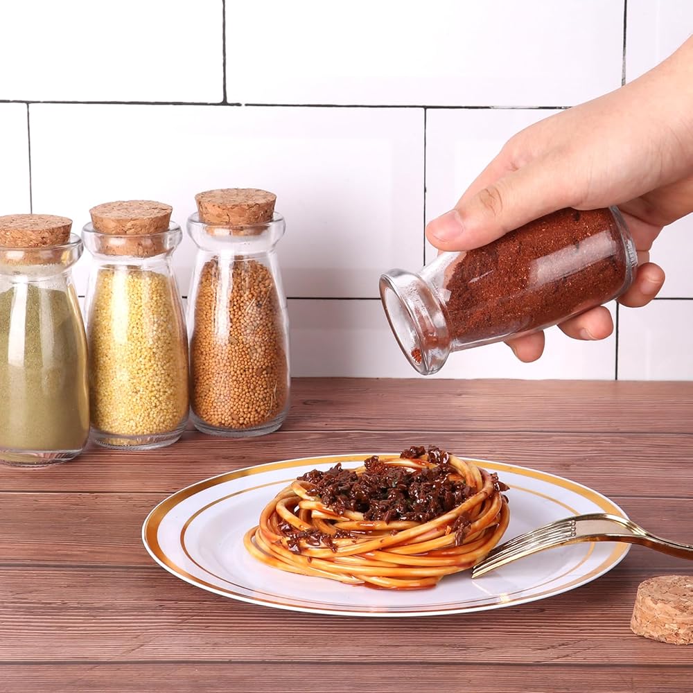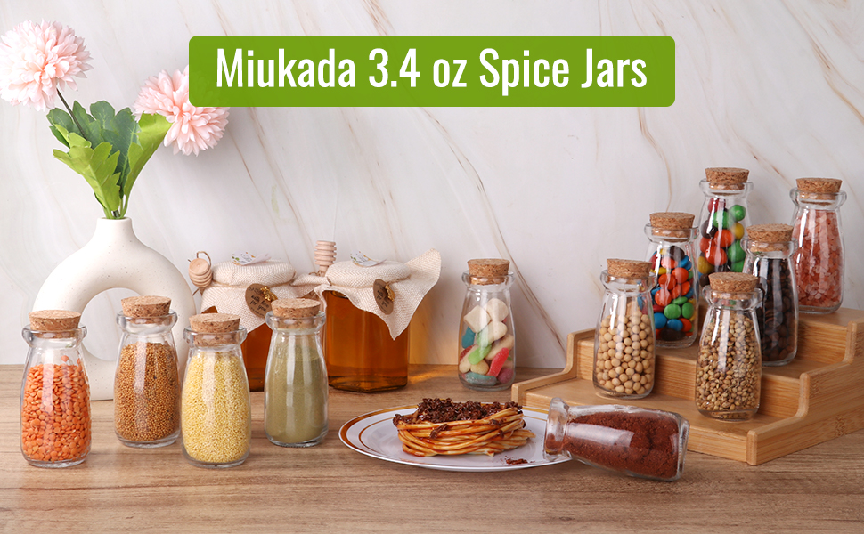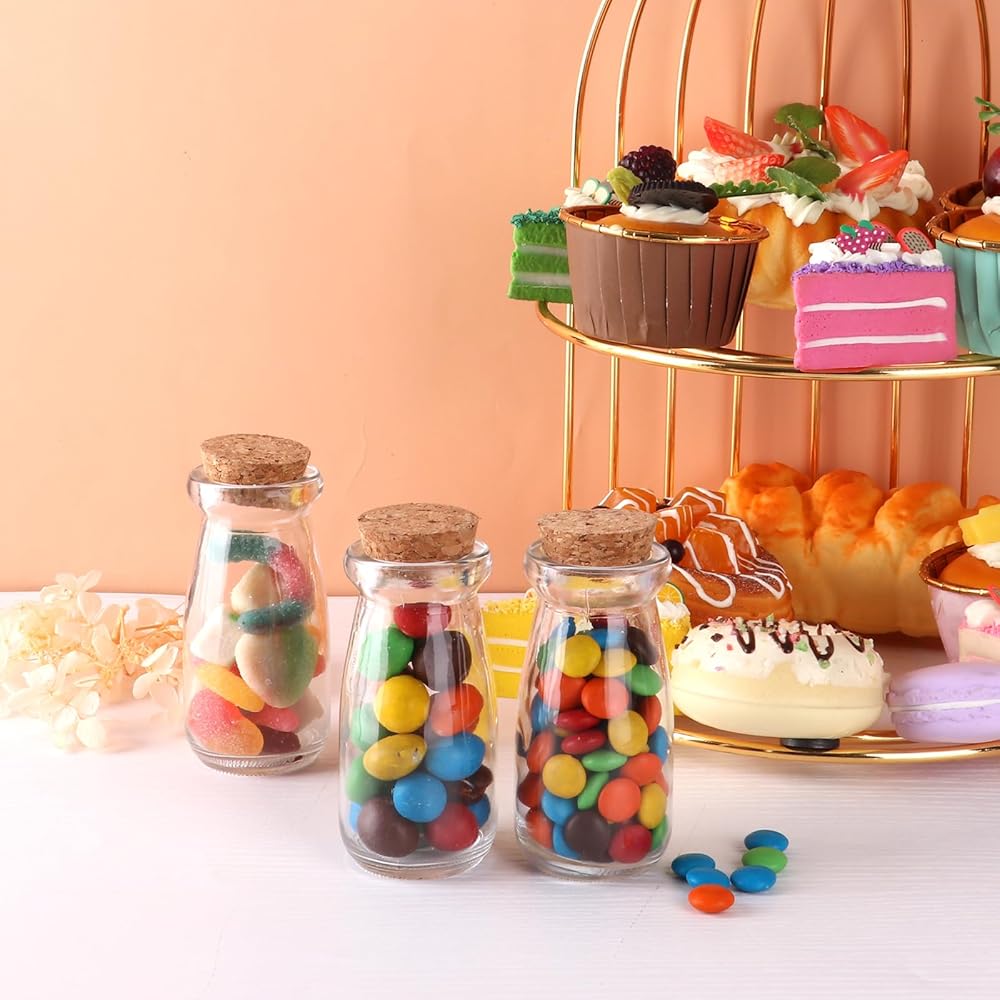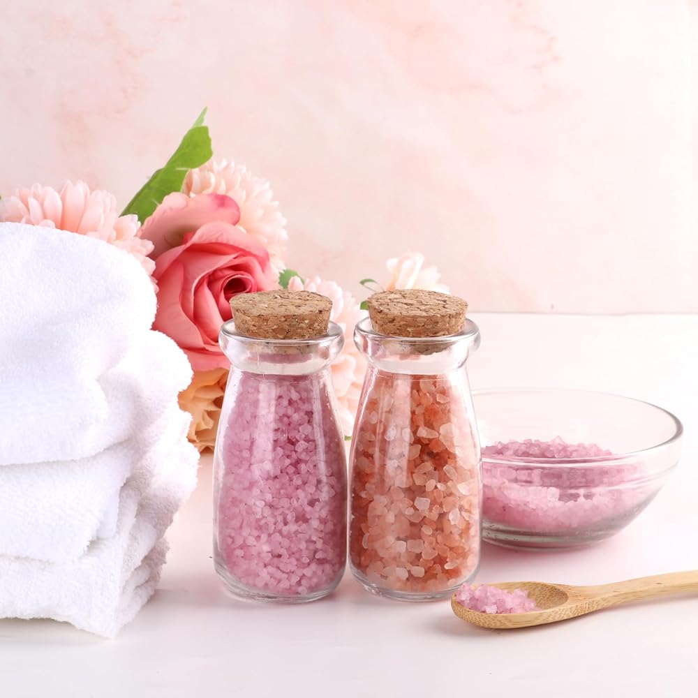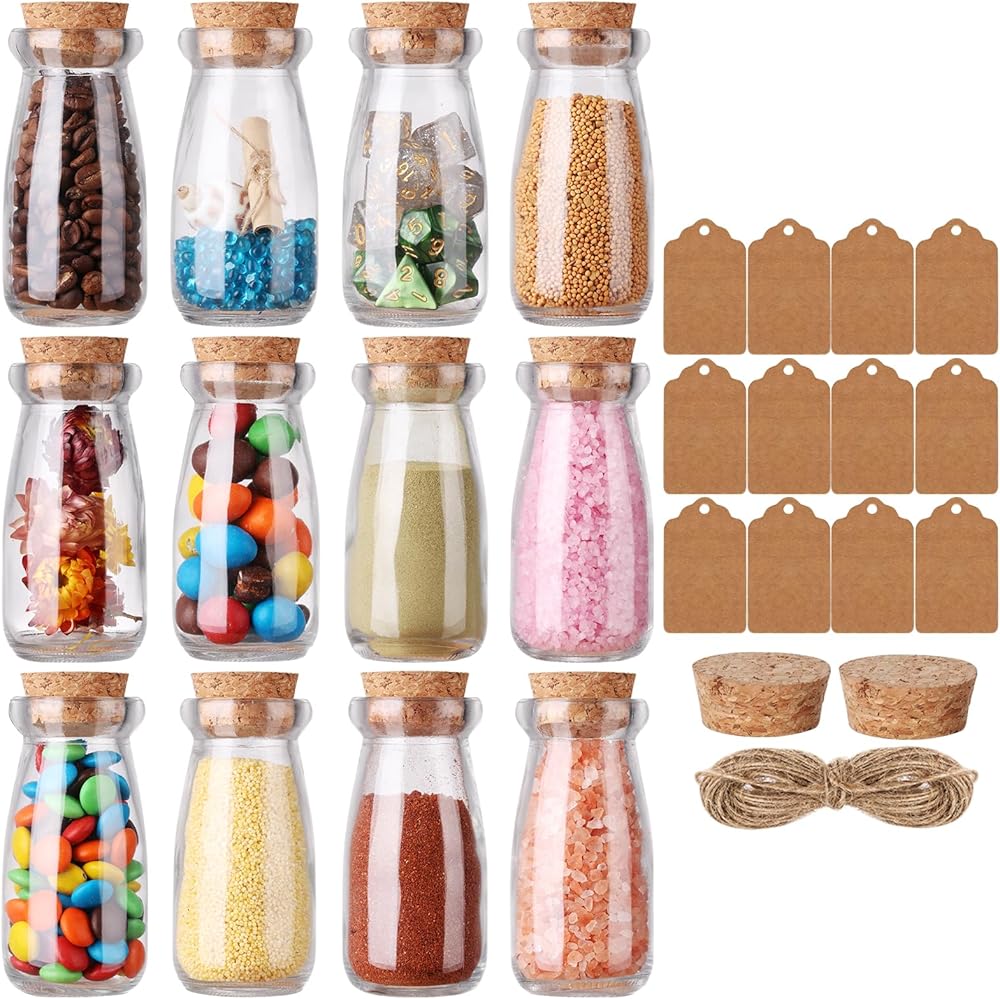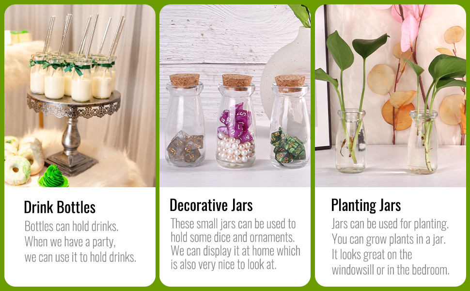 برطمانات متعددة الاستخدامات: زجاجات زجاجية صغيرة مع فلين يمكنها حمل الزبادي والحليب والنباتات وملح الاستحمام والتوابل والأعشاب؛ البرطمانات الصغيرة مثالية لنشر النباتات؛ يمكنك استخدام هذه البرطمانات الصغيرة لملء الحلوى كهدايا للحفلات لحفلة استقبال الطفل.