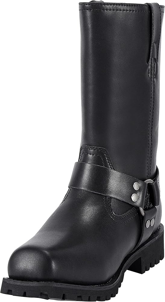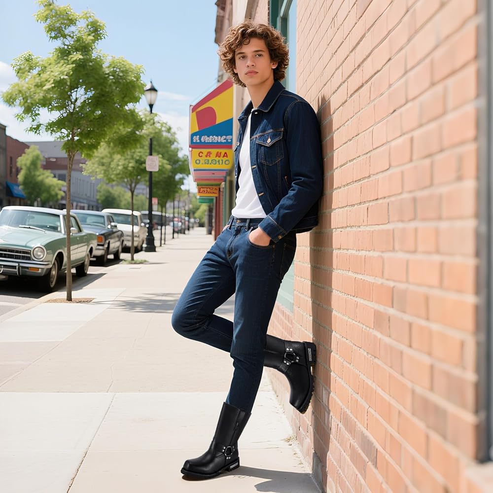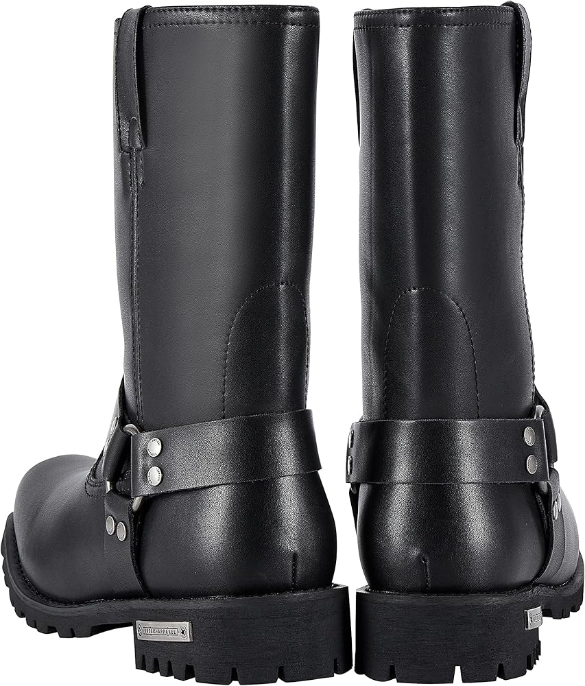 【Unique design】This mens PU leather boots have 2 styles: one with side zipper and one without zipper, easy to put on and take off and save your time. Classic harness design, O-ring ankle harness straps, retro will never go out of style. The rounded toe ensures your toes are protected. Go well with jeans, pants.