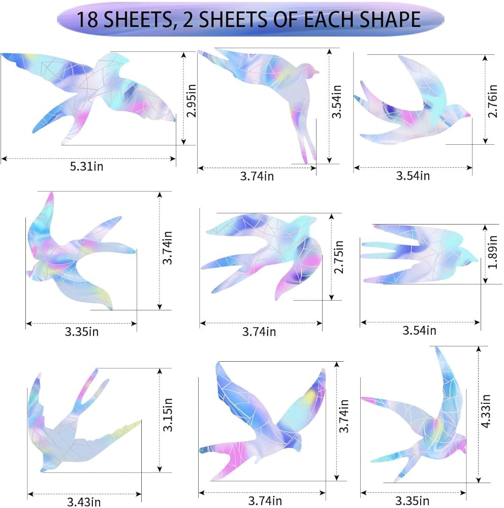 PACKAGE: 18 Bird Strike Window Decals, these window stickers can be used as bird deterrents and beautiful home decor.