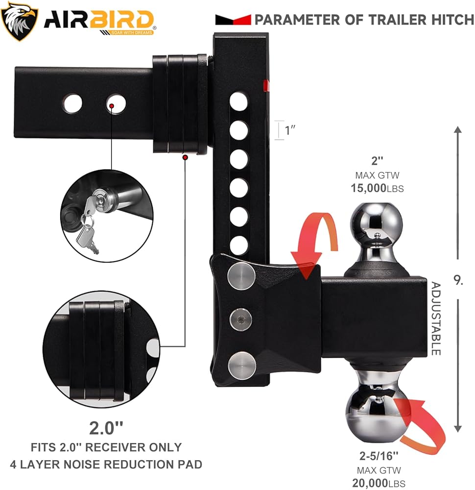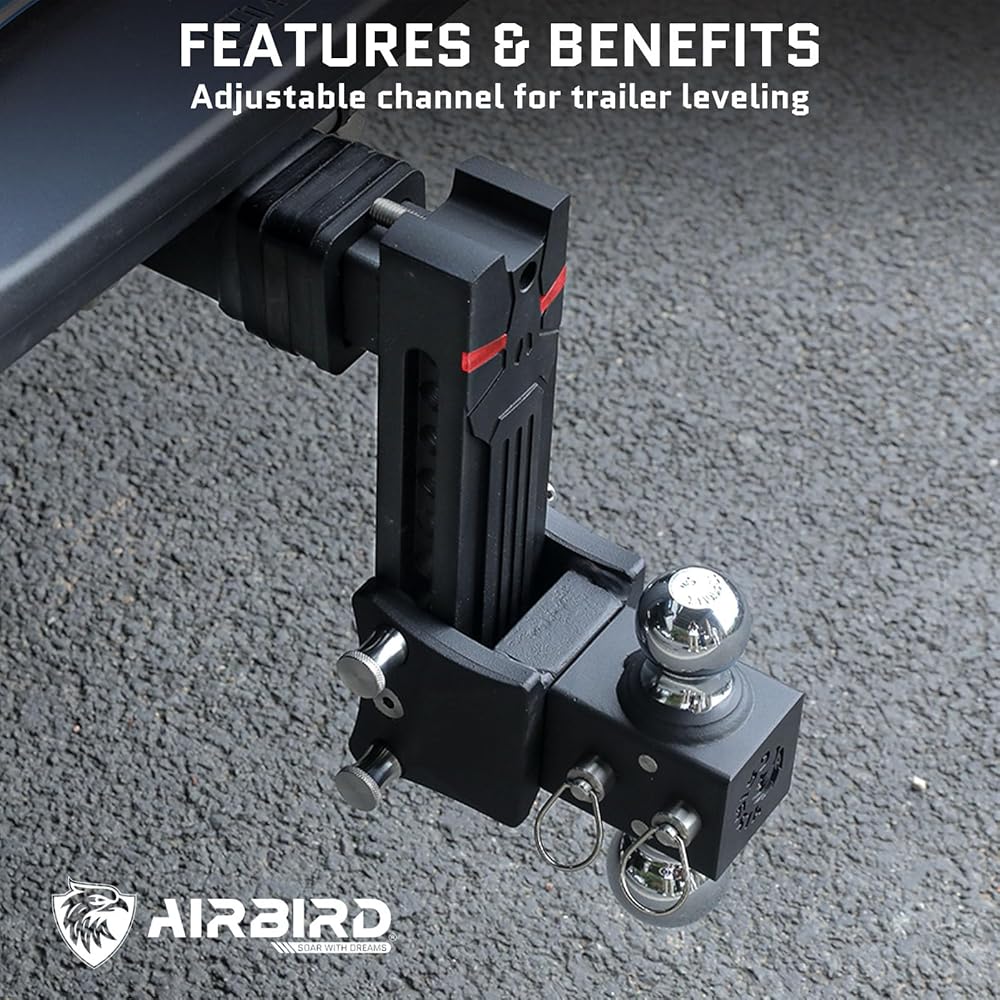 تحميل آمن بمستوى قابل للتعديل: يوفر جهاز وصلة المقطورة القابل للتعديل مستويات قابلة للتعديل من خلال اثنين من المسامير المقاومة للصدأ، مما يتيح 5 أوضاع مختلفة للسقوط من أجل محاذاة مثالية للمركبة والمقطورة. يتضمن قفلًا مضادًا للسرقة لتأمين المنتج إلى جهاز الاستقبال، ومنع السرقة والخسارة، عند عدم استخدام وصلة المقطورة. ما عليك سوى تدوير وصلة المقطورة أسفل السيارة وتشغيل تعديل السحب للخلف الحاصل على براءة اختراع من أجل السلامة!