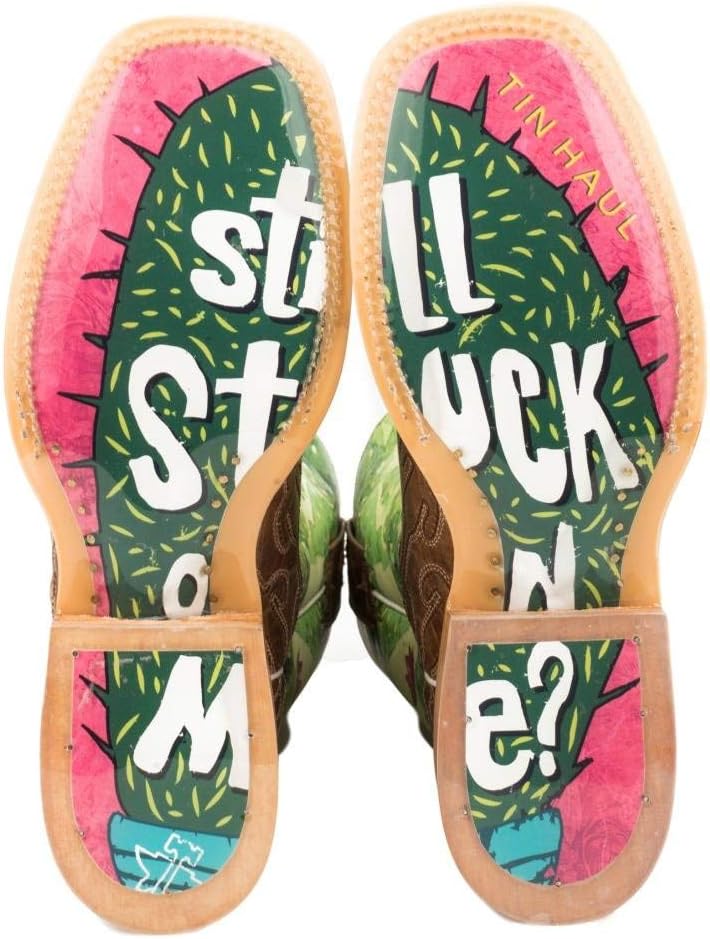 Must have western styles boots are in from Tin Haul! This ladies style boot features a wide square toe with burnished tan stitched cactus vamp and printed cactus shaft and Stuck On Me Sole. Style these with your favorite denim and tops for a western inspired look! Please note that if you are ordering boots, the leather process and distressing is normal. Each boot is hand stitched and is individually unique. All our boots have been thoroughly inspected for true "defects" by the manufacturer and our staff. If you have questions about any pair of boots please contact our stylists for additional information.