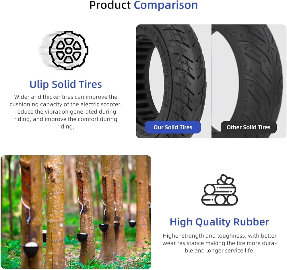 • 【إطارات صلبة لزيادة راحة الركوب】- صنعت يوليب هذا الهيكل الداخلي المجوف خصيصًا لمساعدة السكوتر على امتصاص الصدمات وتبديد الحرارة والشعور بالطريق بشكل أفضل. الانتعاش والمرونة الجيدان يبقيك بعيدًا عن سيناريوهات الانفجار وثقب الإطارات، لا حاجة للنفخ أو الإصلاح، موفر للوقت الحقيقي، ضروري للسكوتر الخاص بك، يمكن أن يدوم آلاف الأميال دون أي صيانة.