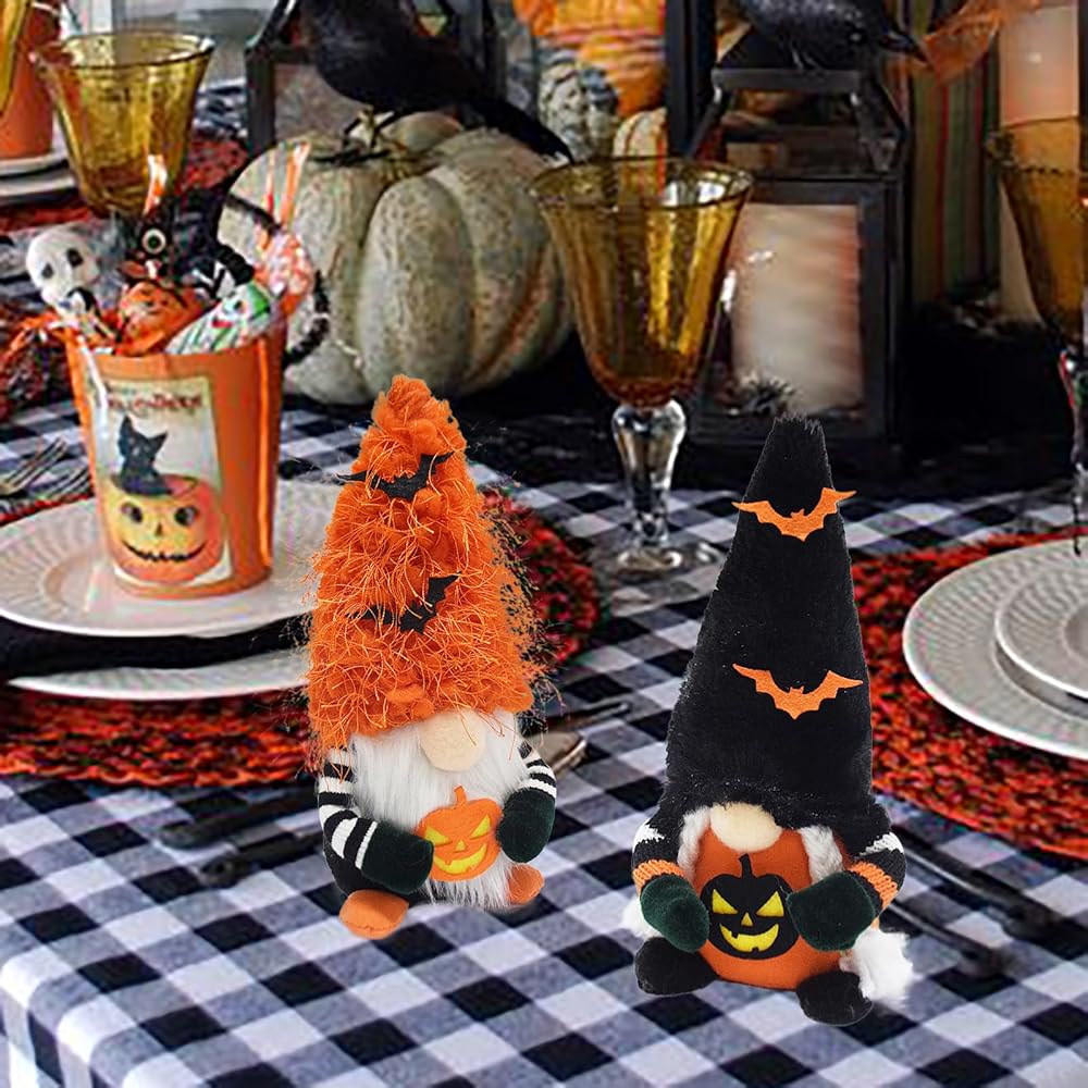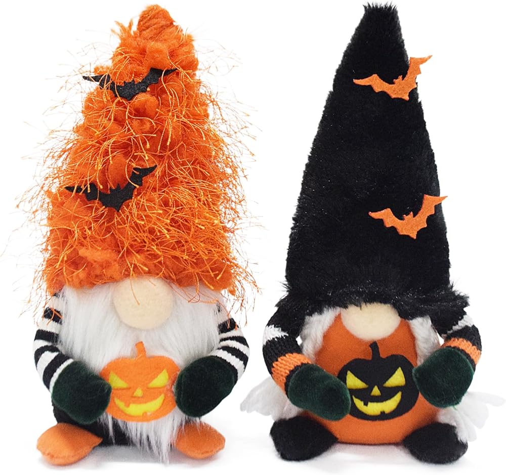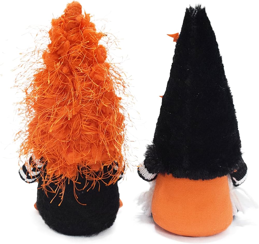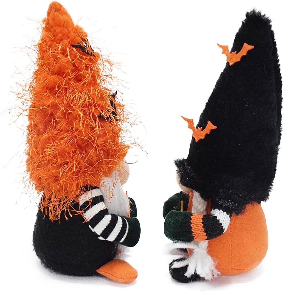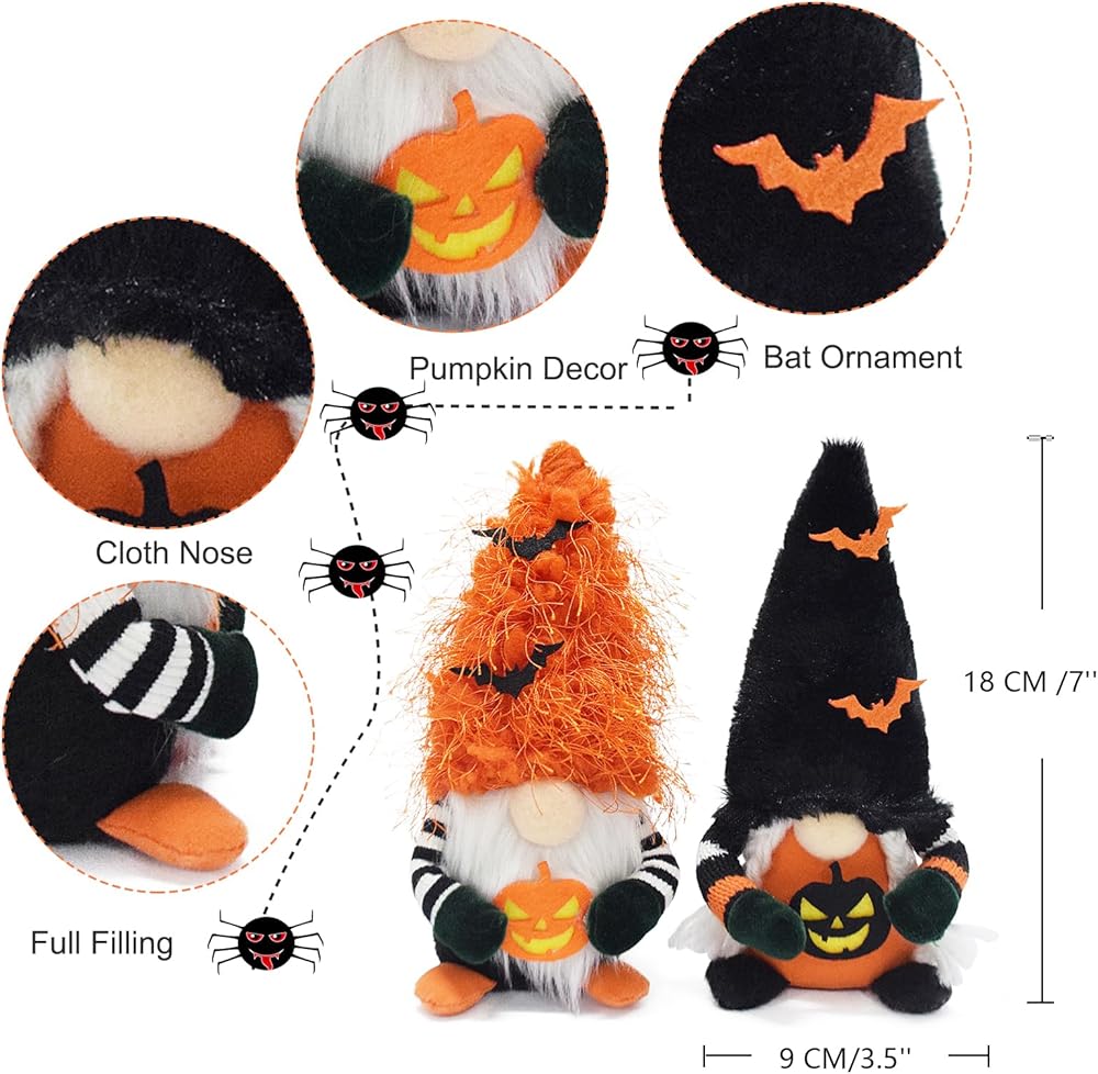 [Unique Design] Halloween dwarf would make a great addition to your holiday decor! This gnome has a plush hat made with orange colored and hat with bat attached to it.