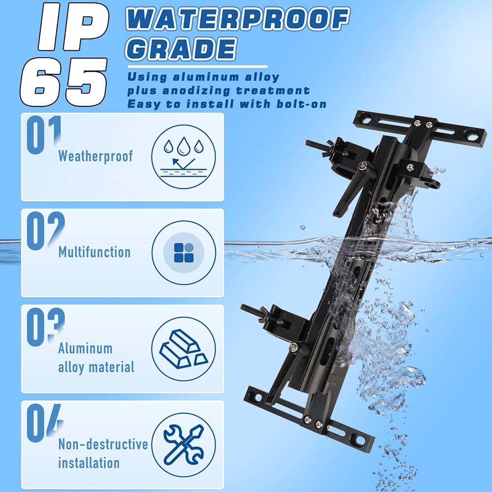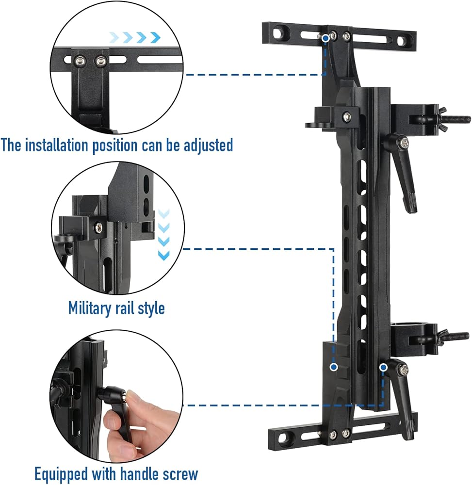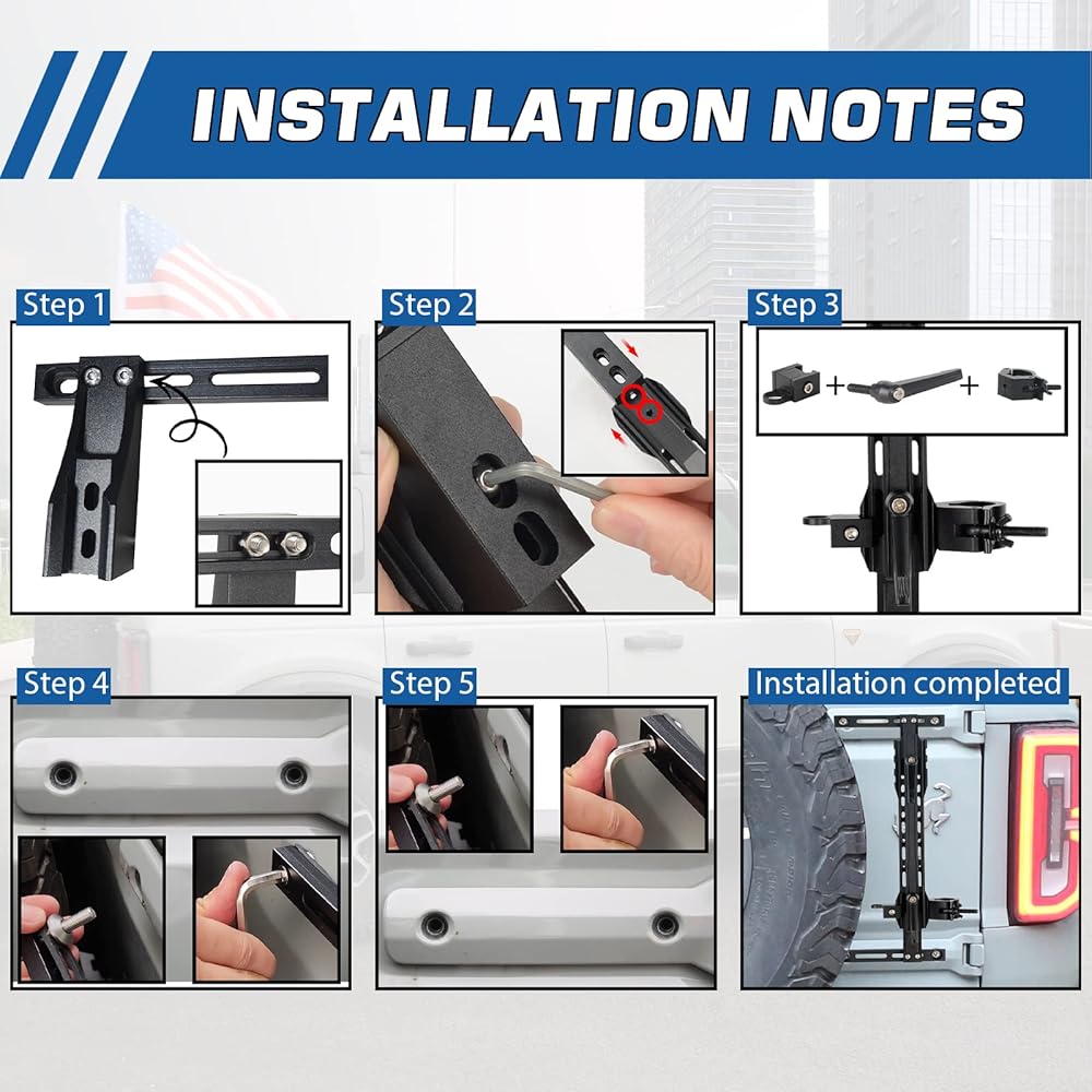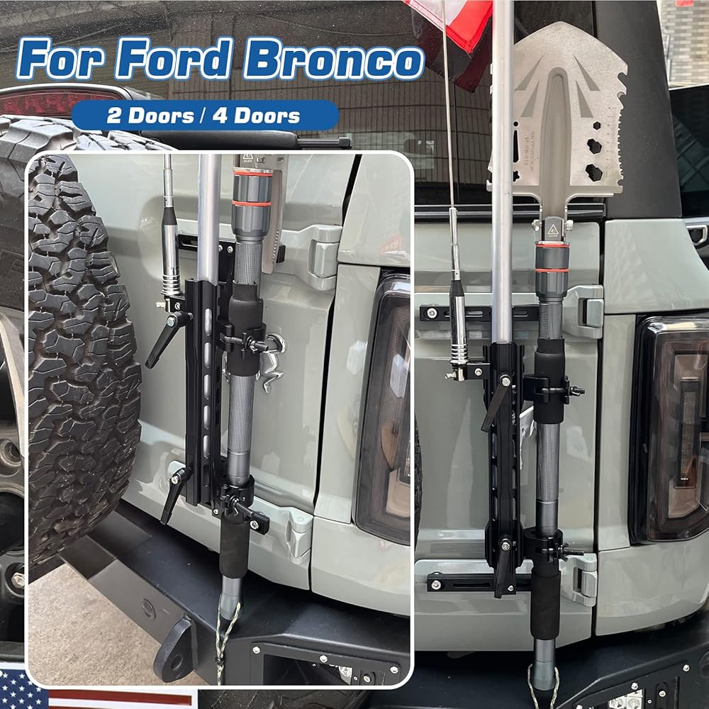 【3 in 1 bracket】Antenna bracket can be placed on the Holder left side. The middle can be used as a flagpole bracket(Adjustable Thumbscrew Holds Pole Firmly in Place. The right side coule be placed the military shovel. The multi-function bracket make the Bronco look cleaner and simpler.