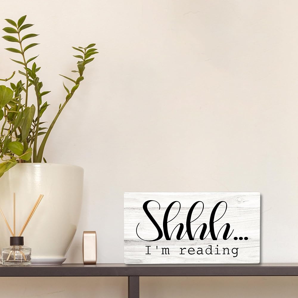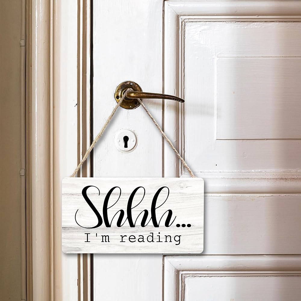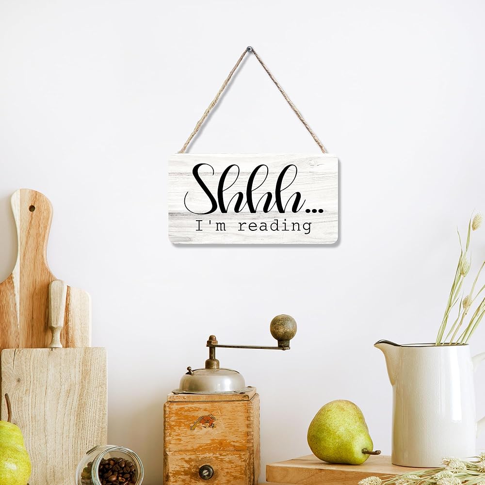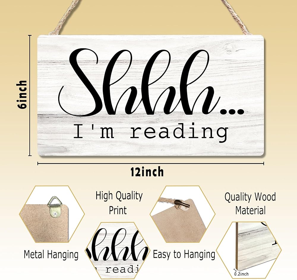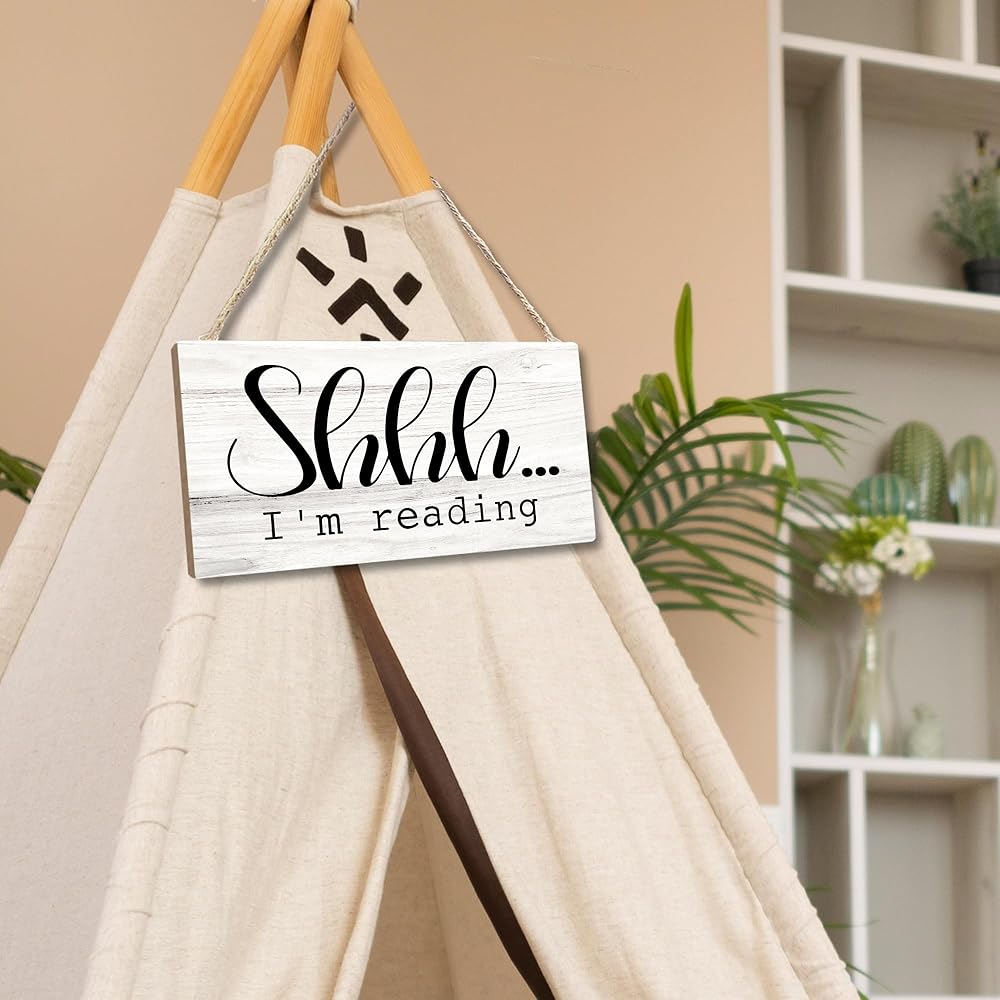 علامة خشبية لزاوية القراءة في الفصل الدراسي، غرفة الأطفال للقراءة في ركن الحضانة، لافتة معلقة لتزيين الحائط، Shhh I'm Reading Book Lovers ديكور الباب 12 × 6 بوصة