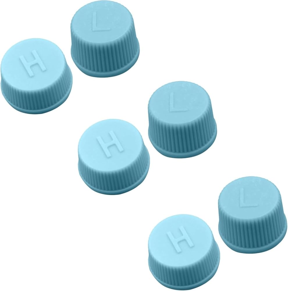 Ensure your car's air conditioning system remains leak-free and functions optimally with these 6Pcs Blue Replacement Valve Caps. Designed specifically for R134a AC systems, these leakproof caps fit securely onto the high and low pressure charging ports, preventing refrigerant leaks and maintaining proper system pressure. Made from durable materials, these caps are built to withstand the rigors of daily driving and extreme weather conditions. Easy to install, simply remove the old caps and screw these replacements on tightly. Keep your vehicle's air conditioning running smoothly and efficiently with these essential replacement valve caps.