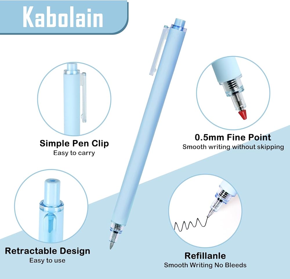 【عبوات قابلة للاستبدال: 】لا ينفد الحبر أبدًا خلال اللحظات الحاسمة! يأتي قلم الحبر المحايد كابولين الخاص بنا بسعة كبيرة وعبوات قابلة للاستبدال، مما يضمن عمرًا طويلًا للقلم.