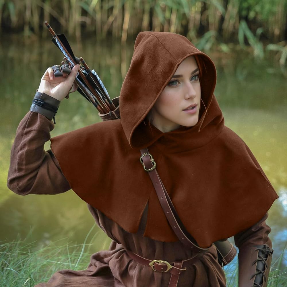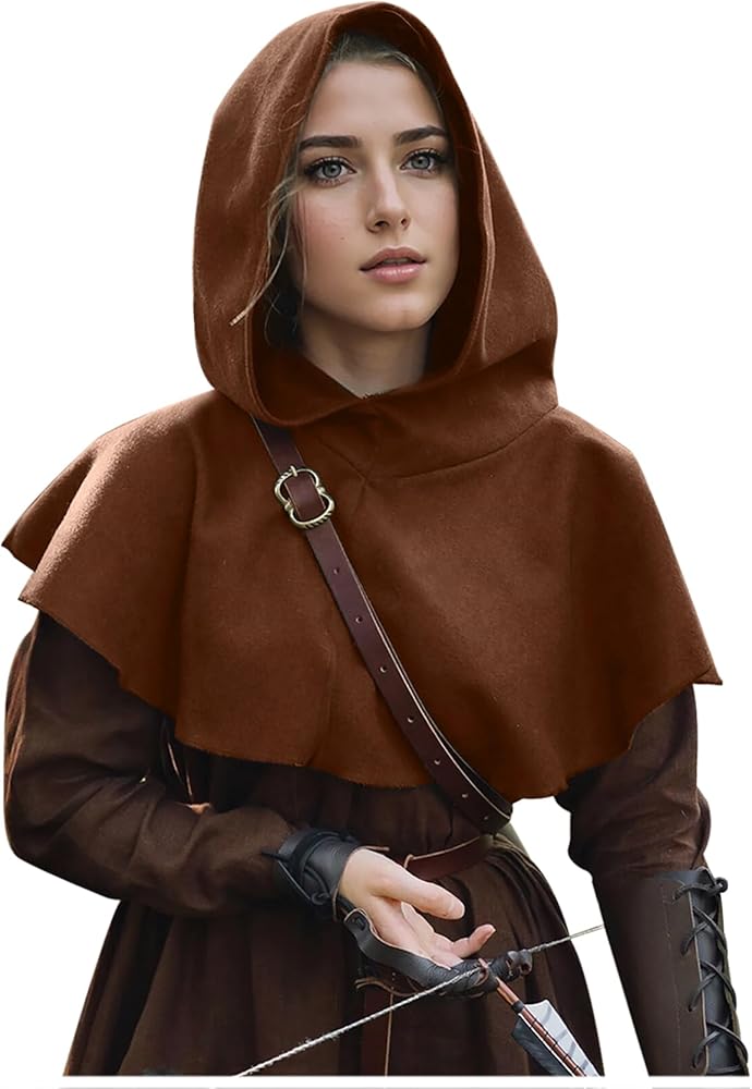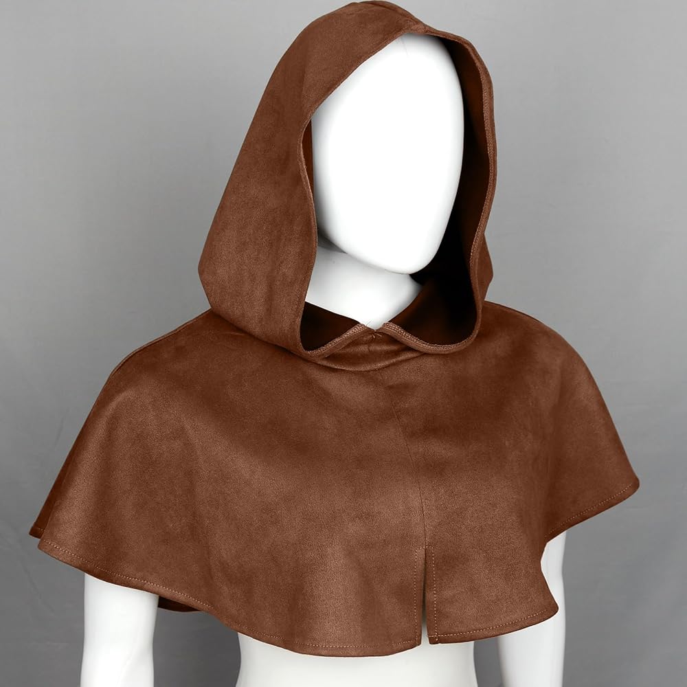 Joukavor Medieval Short Cape with Hood Renaissance Hooded Cowl Assassins Creed Hood