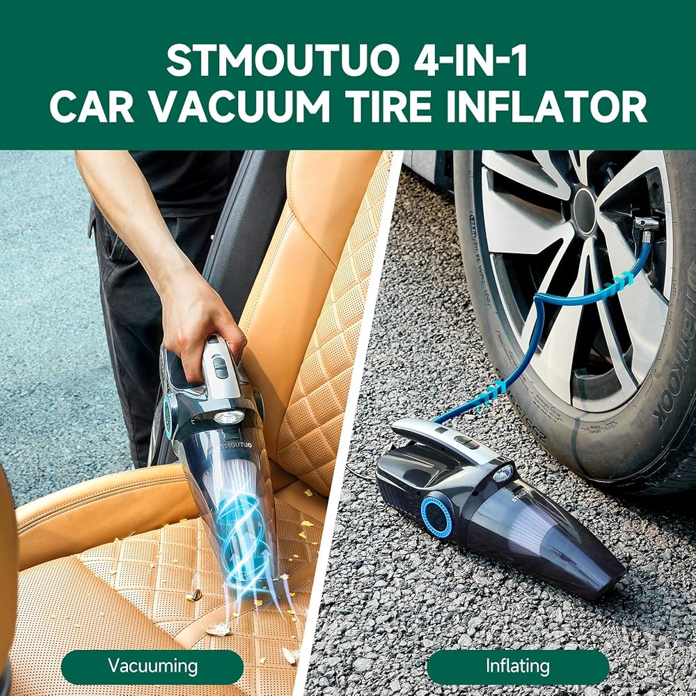 • ** 𝐌𝐔𝐋𝐓𝐈𝐏𝐔𝐑𝐏𝐎𝐒𝐄** - تجمع المكنسة الكهربائية المحمولة للسيارة بين وظائف التنظيف والنفخ. تتضمن المجموعة 14 نوعًا من الملحقات، مما يجعل من السهل التعامل مع التنظيف بالمكنسة الكهربائية والنفخ وإصلاح الإطارات. كما أنها تحتوي على ضوء LED ومقياس ضغط الإطارات. استمتع براحة أربع وظائف في منتج واحد. وظيفة إيقاف التشغيل التلقائي والقياسي** - توفر شاشة LCD ذات الإضاءة الخلفية الرقمية أربع تعديلات للوحدات (BAR، KPA، PSI، كجم/سم²). اضبط الضغط المرغوب فيه، وسيتوقف منفاخ الإطارات تلقائيًا عند الوصول إليه، مما يمنع النفخ الزائد أو انخفاض ضغط الإطارات.